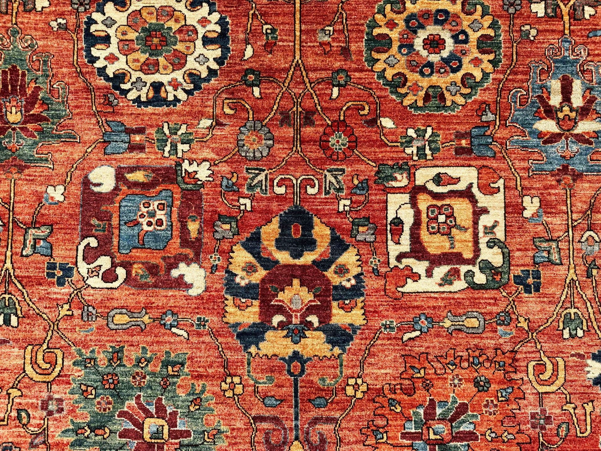 Hand knotted Turkmen weave Afghan carpet, Custom made in a studio in Mazarsharif, 17th century Safavid design, local handspun wool, natural vegetable dyes, a heirloom piece,