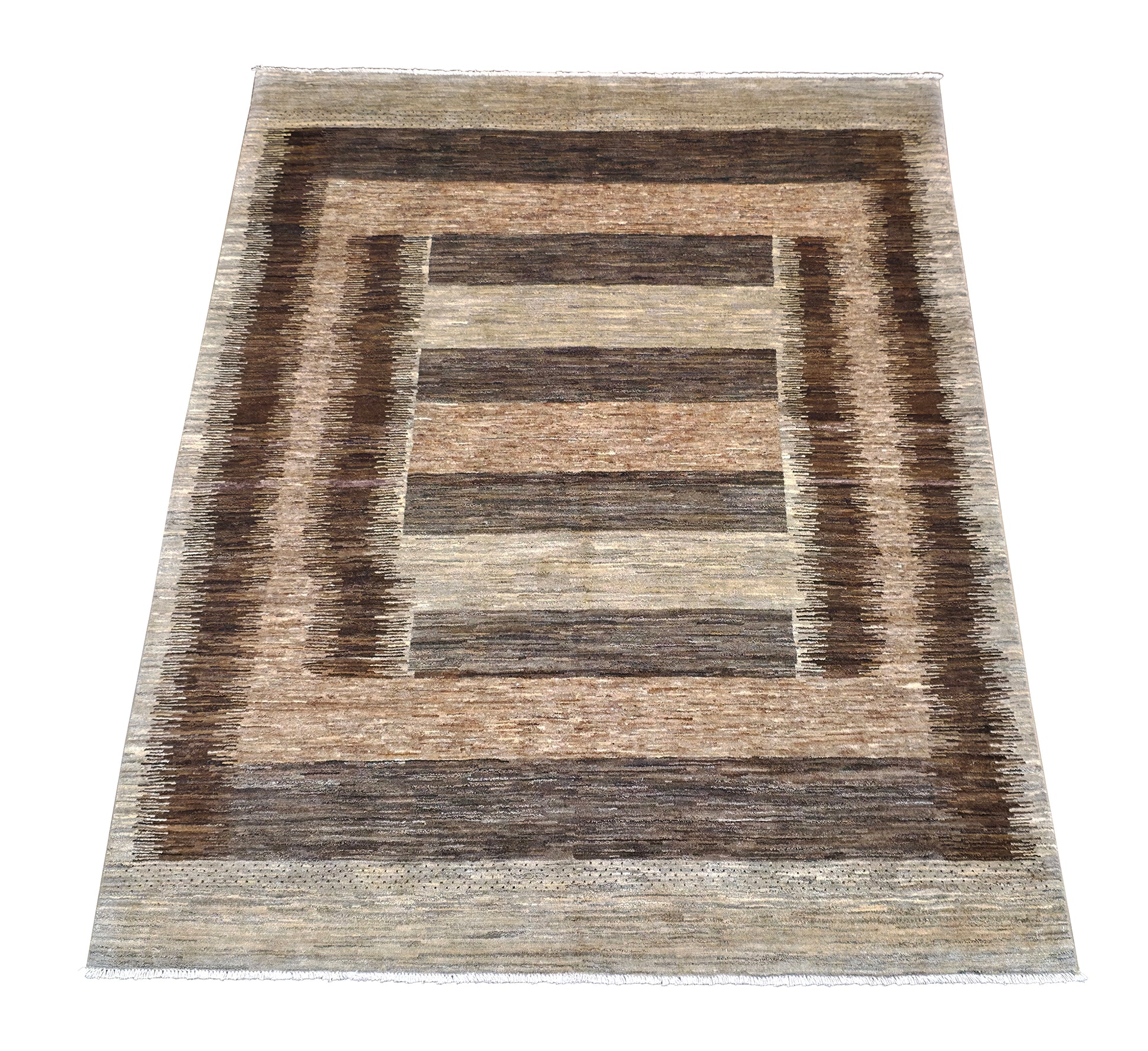 Hand-knotted modern Gabbeh rug, woven by Turkaman artisans in a studio in Mazar-Sharif, Afghanistan, using handspun natural coloured wool, known as Khodrang in Farsi.
