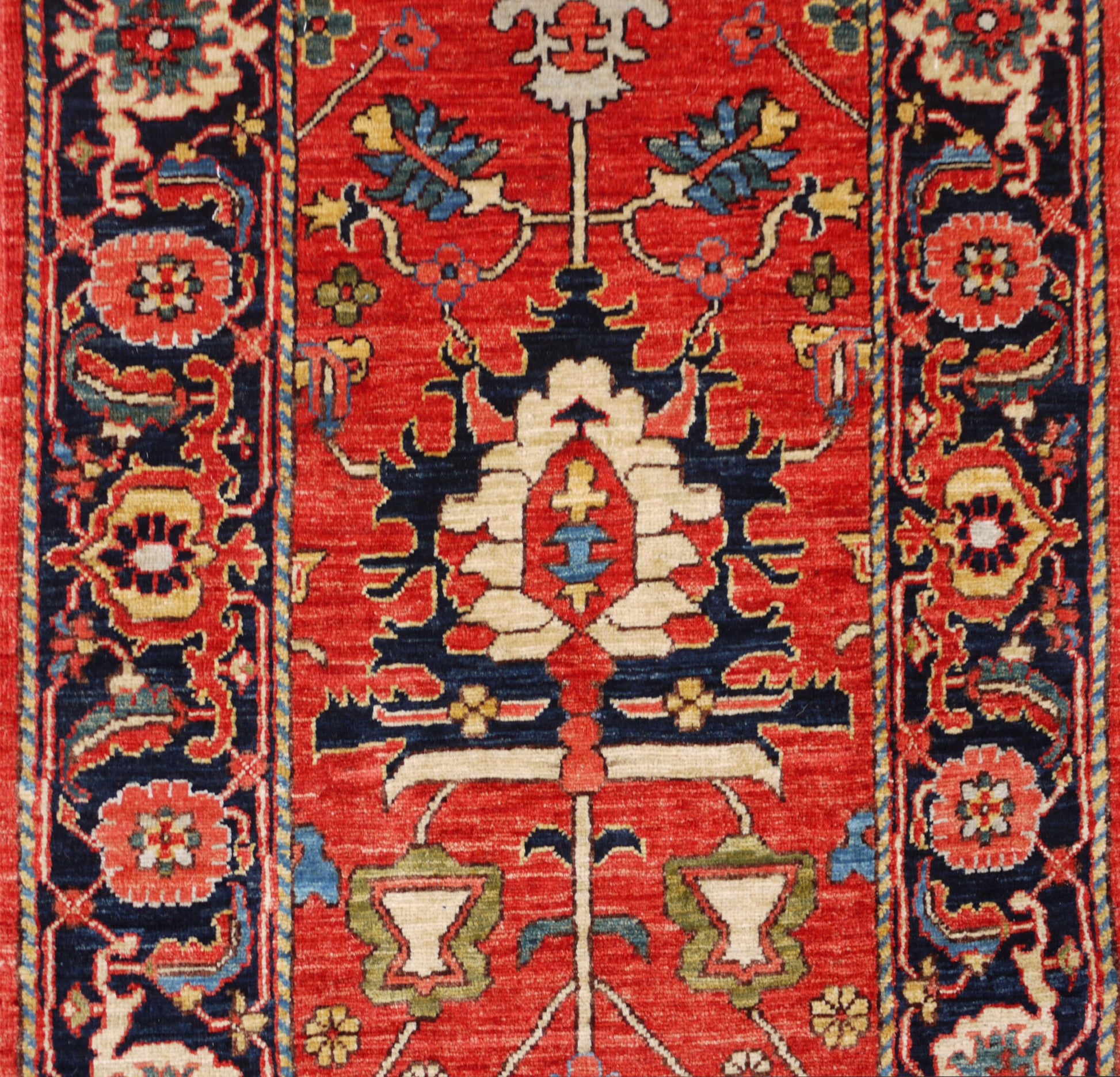 Custom-made Afghan Hall runner, woven by Turkaman women in a studio workshop in Mazar-Sharif using the famous 19th-century Serapi-Heriz design. Crafted with hand-spun local wool pile and natural vegetable dyes. Circa 2016, Afghanistan.