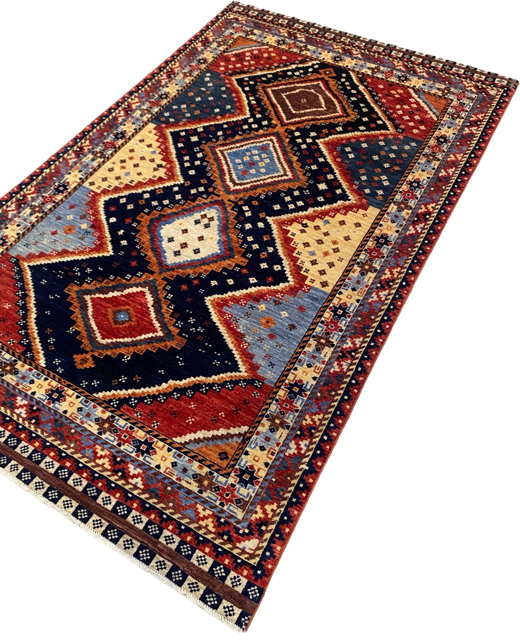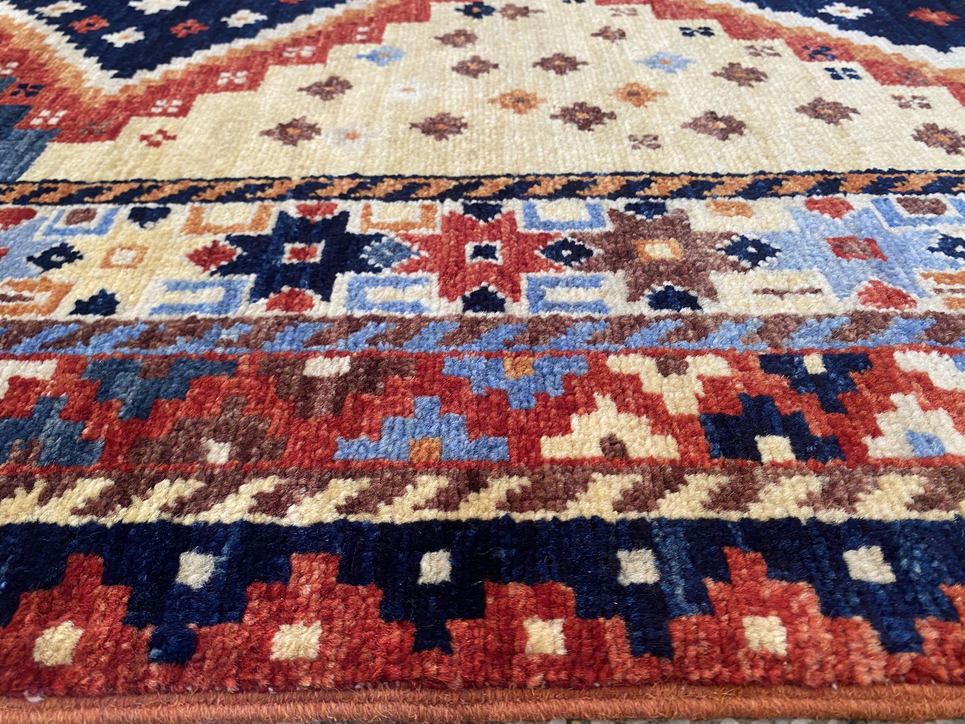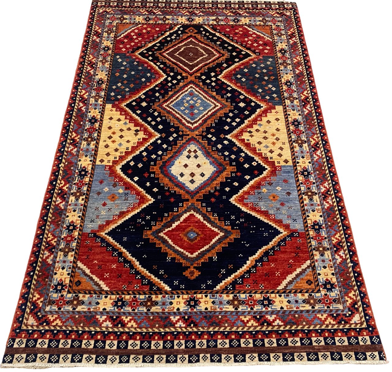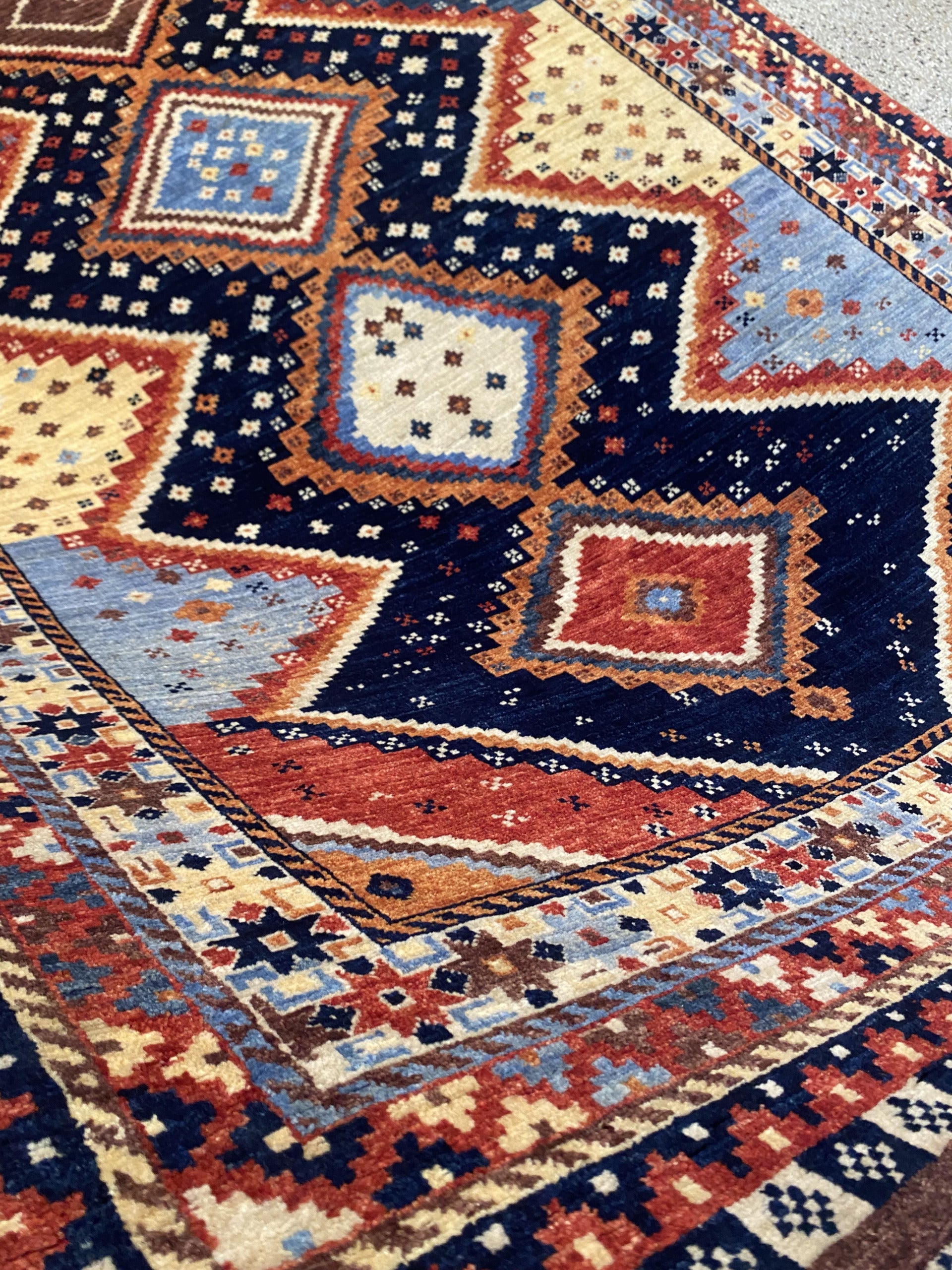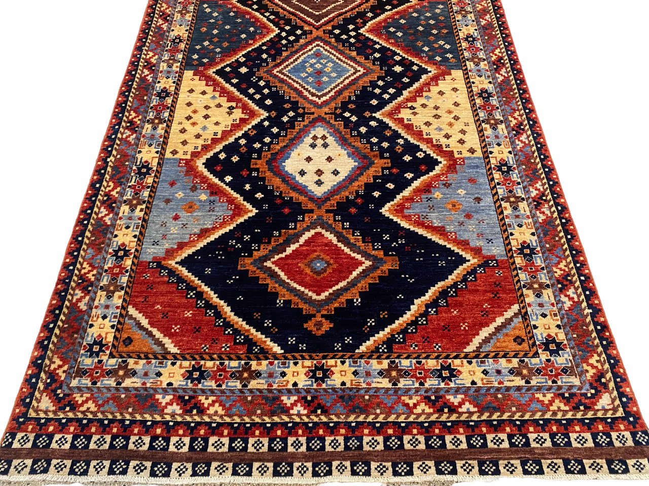 Custom-Made Afghan carpet woven by Turkaman women in a studio workshop in Mazar-Sharif using a Caucasian-Kazak design, handspun local wool and natural vegetable dyes, Circa 2018,