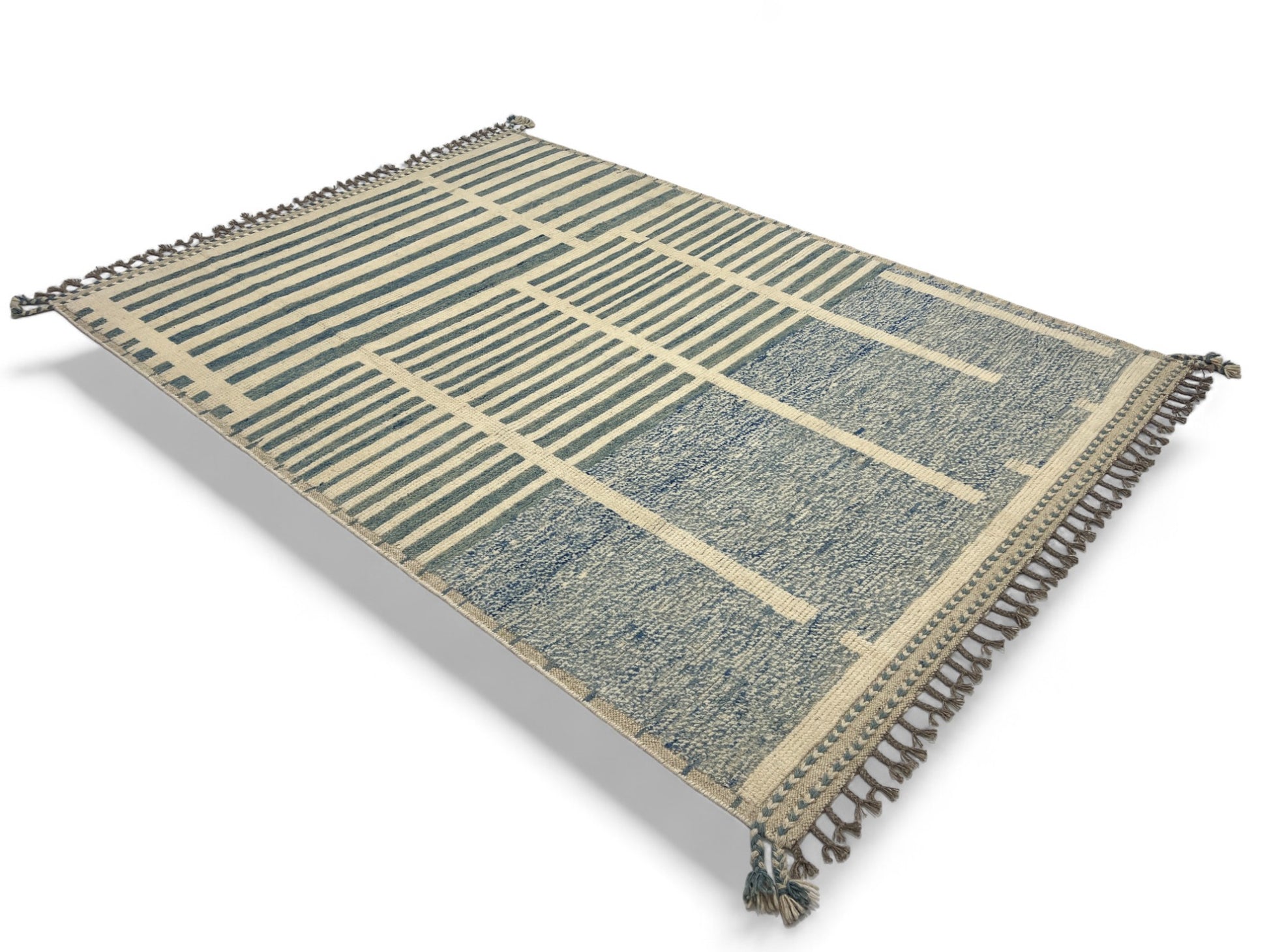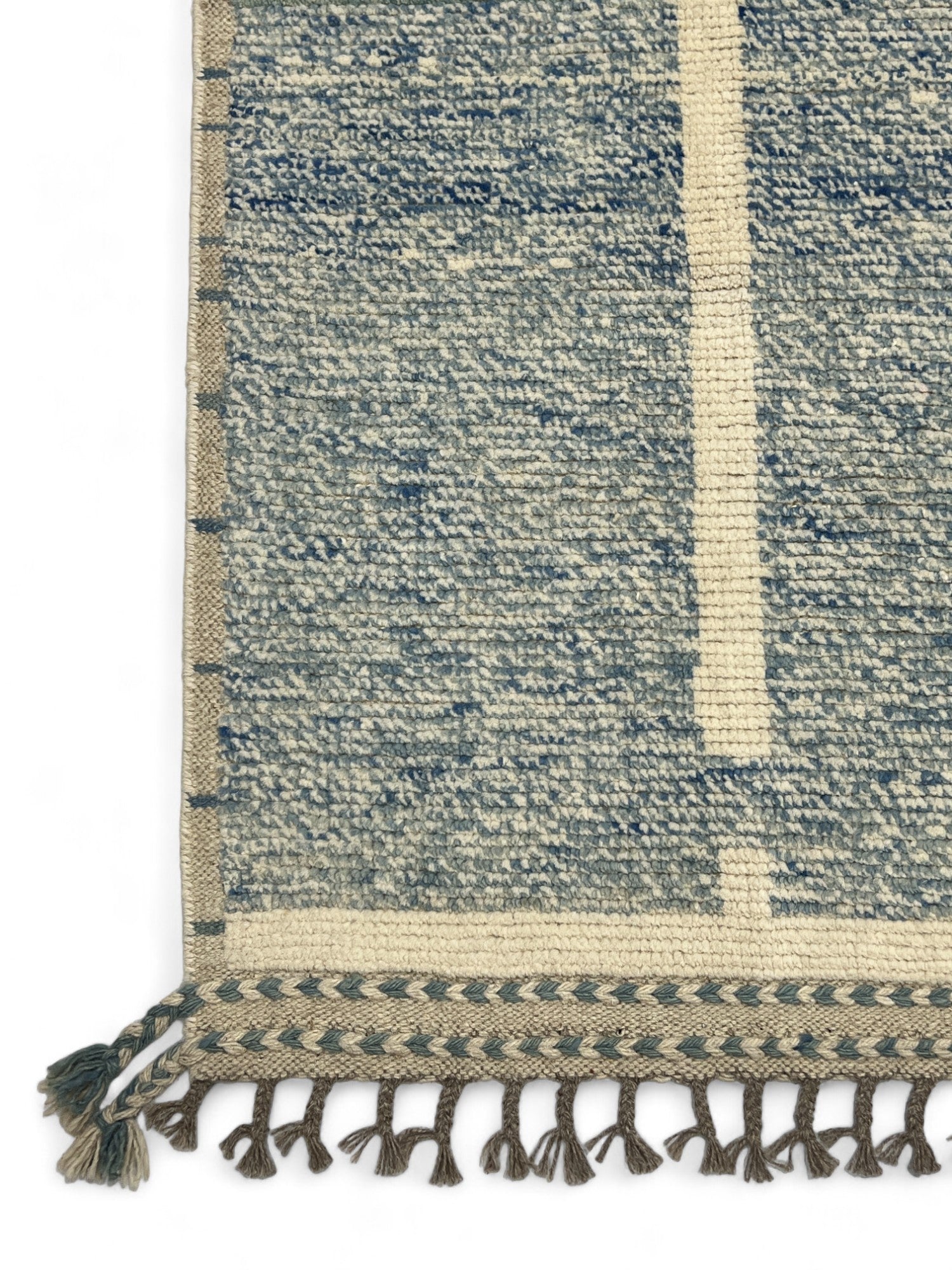 Hand knotted Moroccan style designer inspired by a mid century Swedish design, all handspun wool pile, Natural vegetable dyes, woven in Afghanistan,