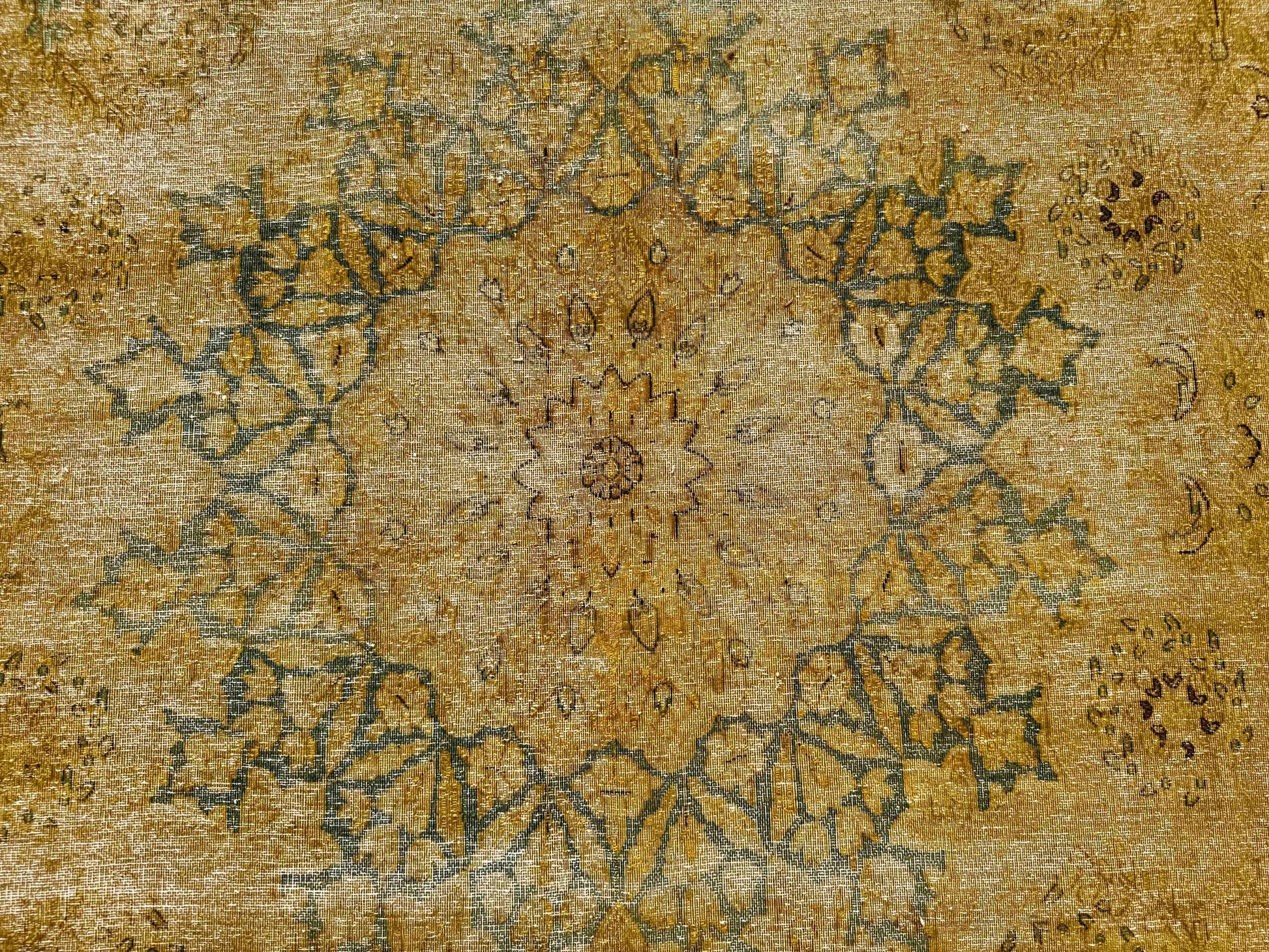 Distressed and vintage overdyed Persian Kerman, 385x287cm | Rug# 27242