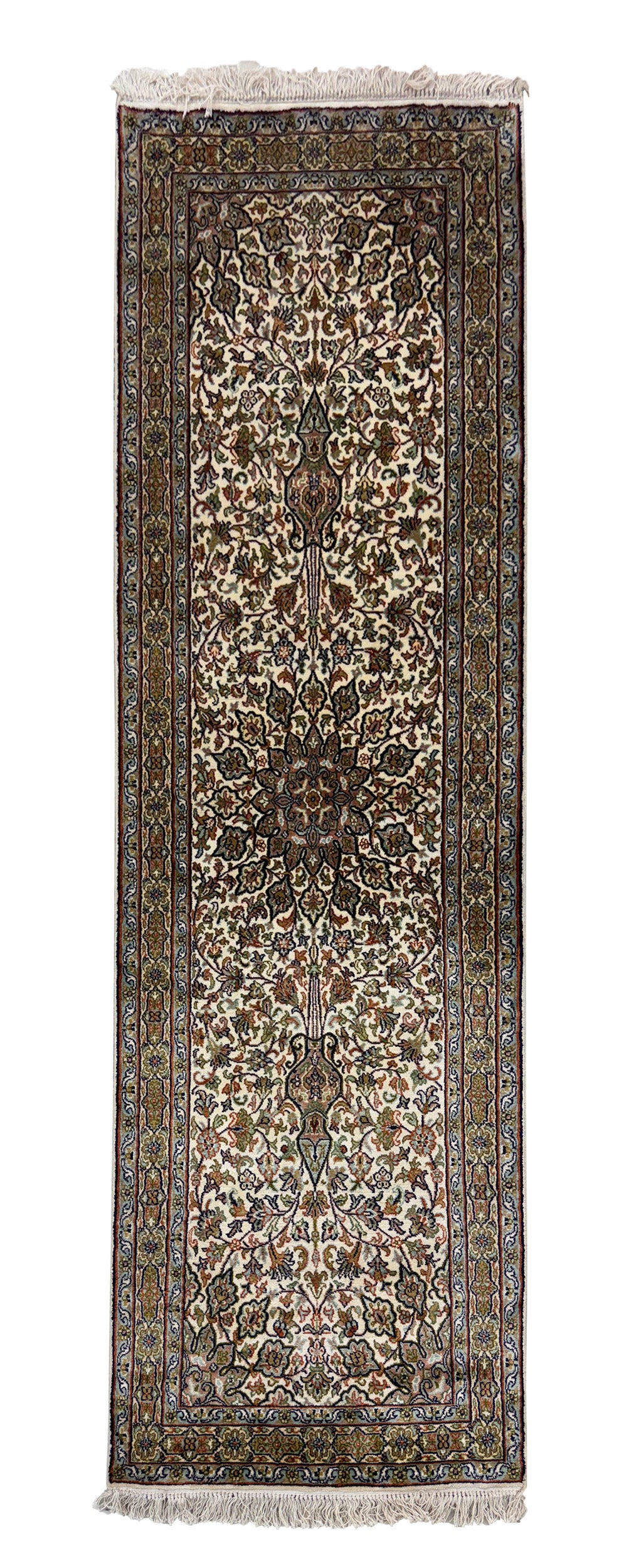 Hand knotted Kashmir pure silk runner, 190x61cm | Rug# 32034