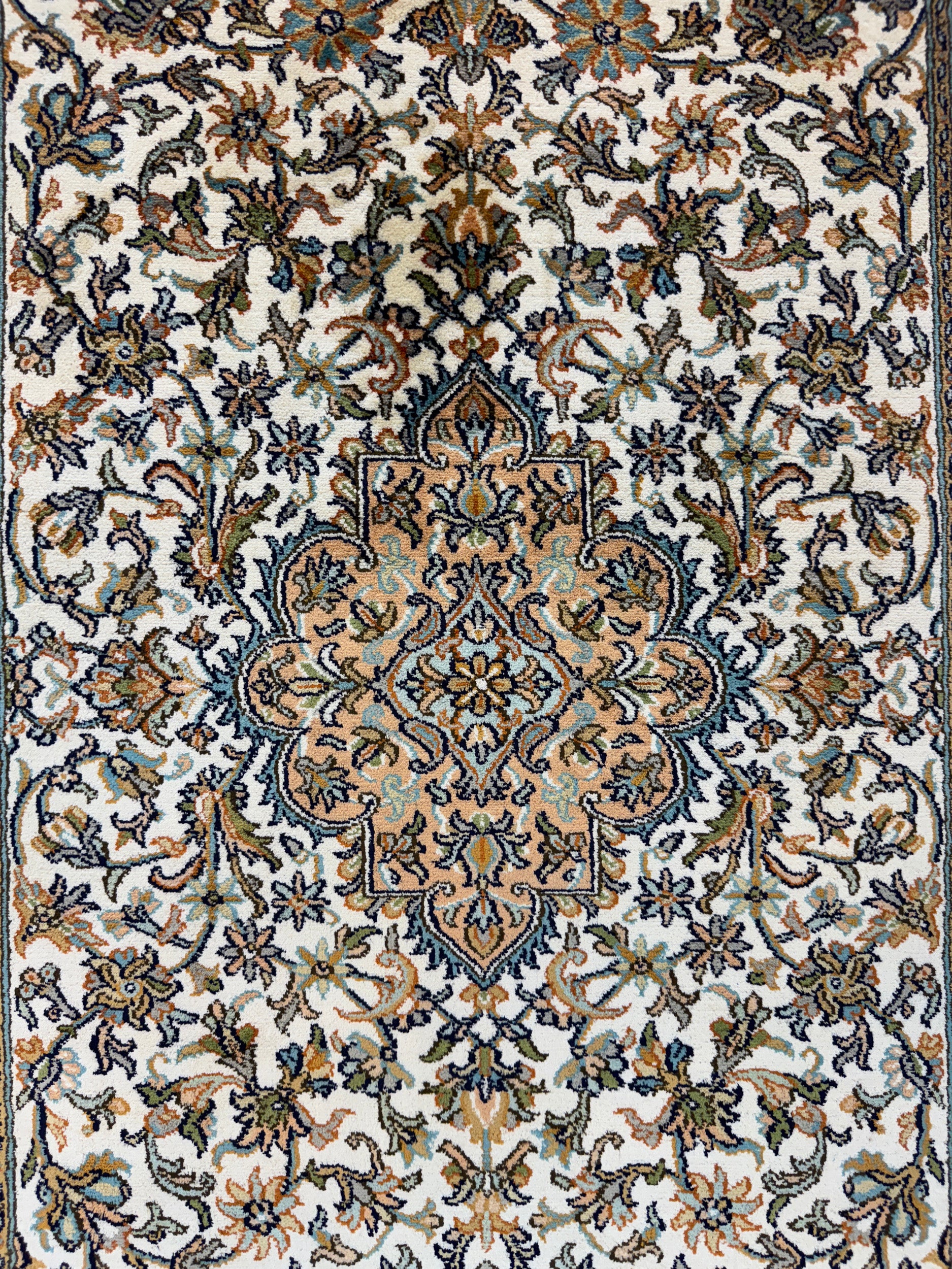 Hand knotted Kashmir in pure silk pile, 500,000 Knots Per SQ/Metre, famous classic Persian Shah-Abbasi floral design, woven in Srinagar in Kashmir, circa 2024,