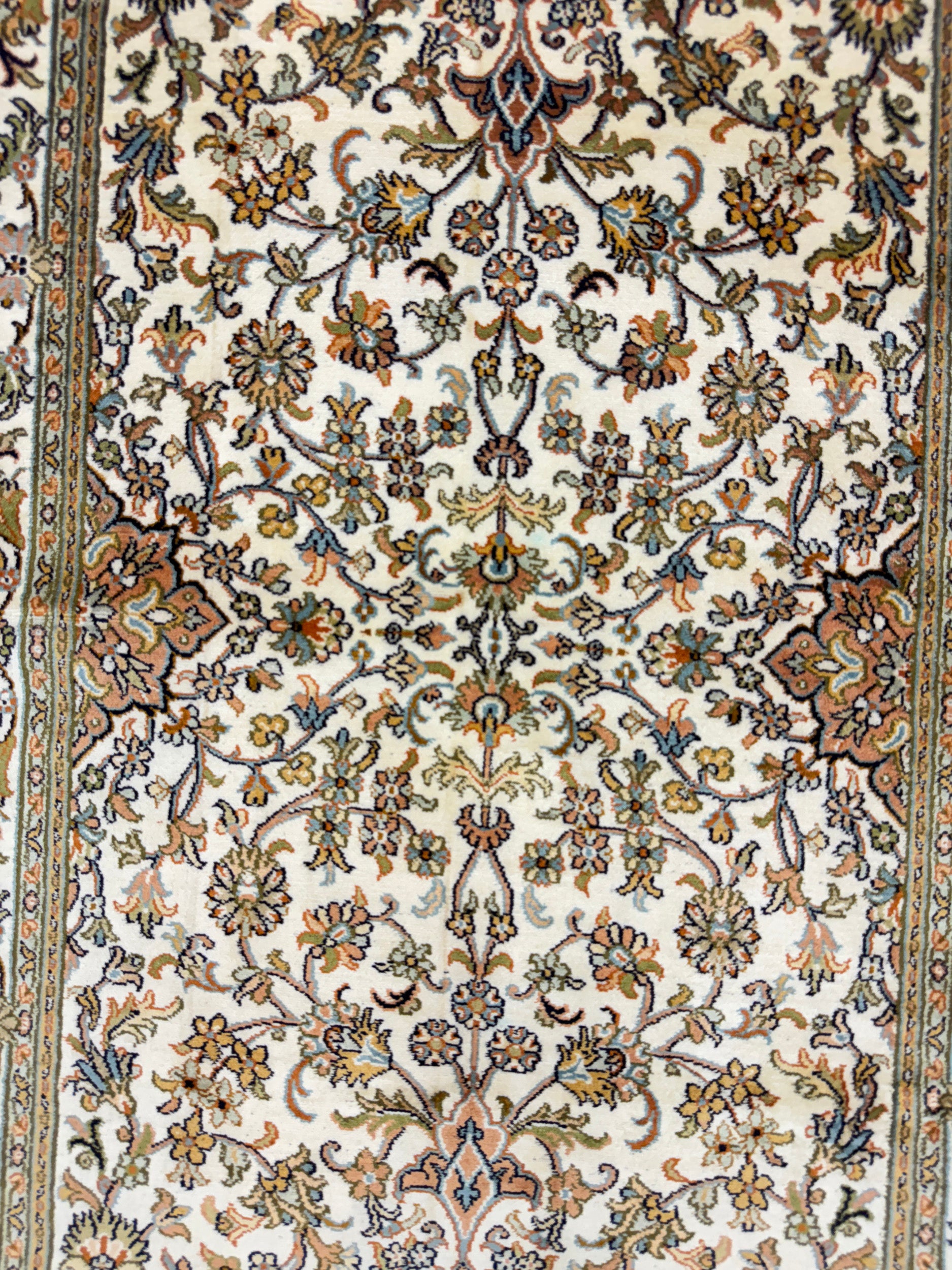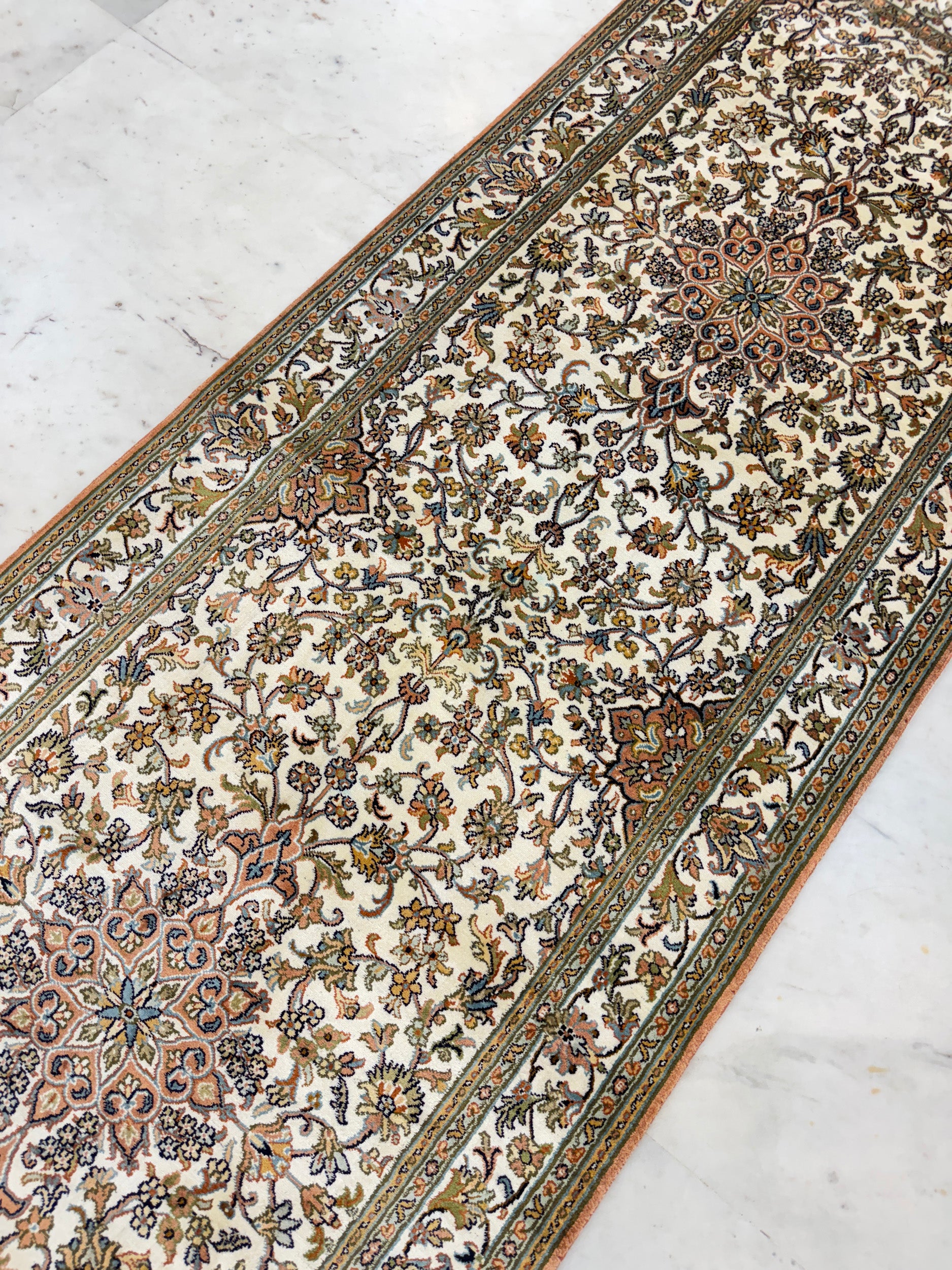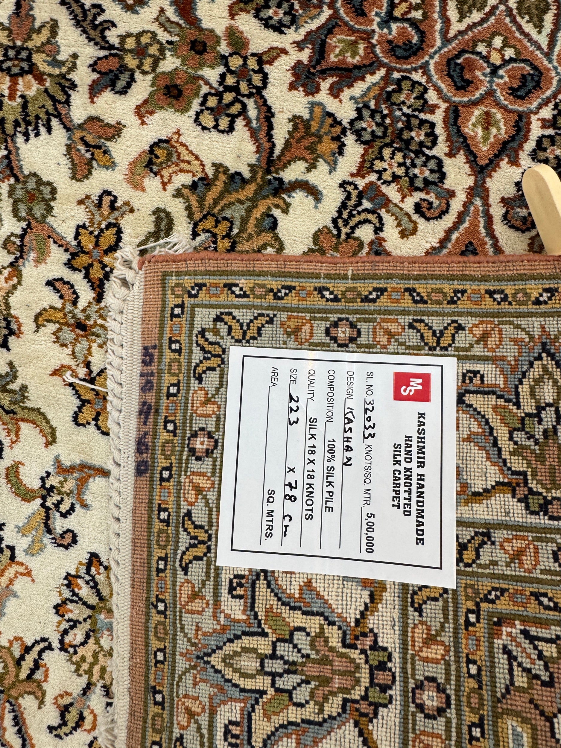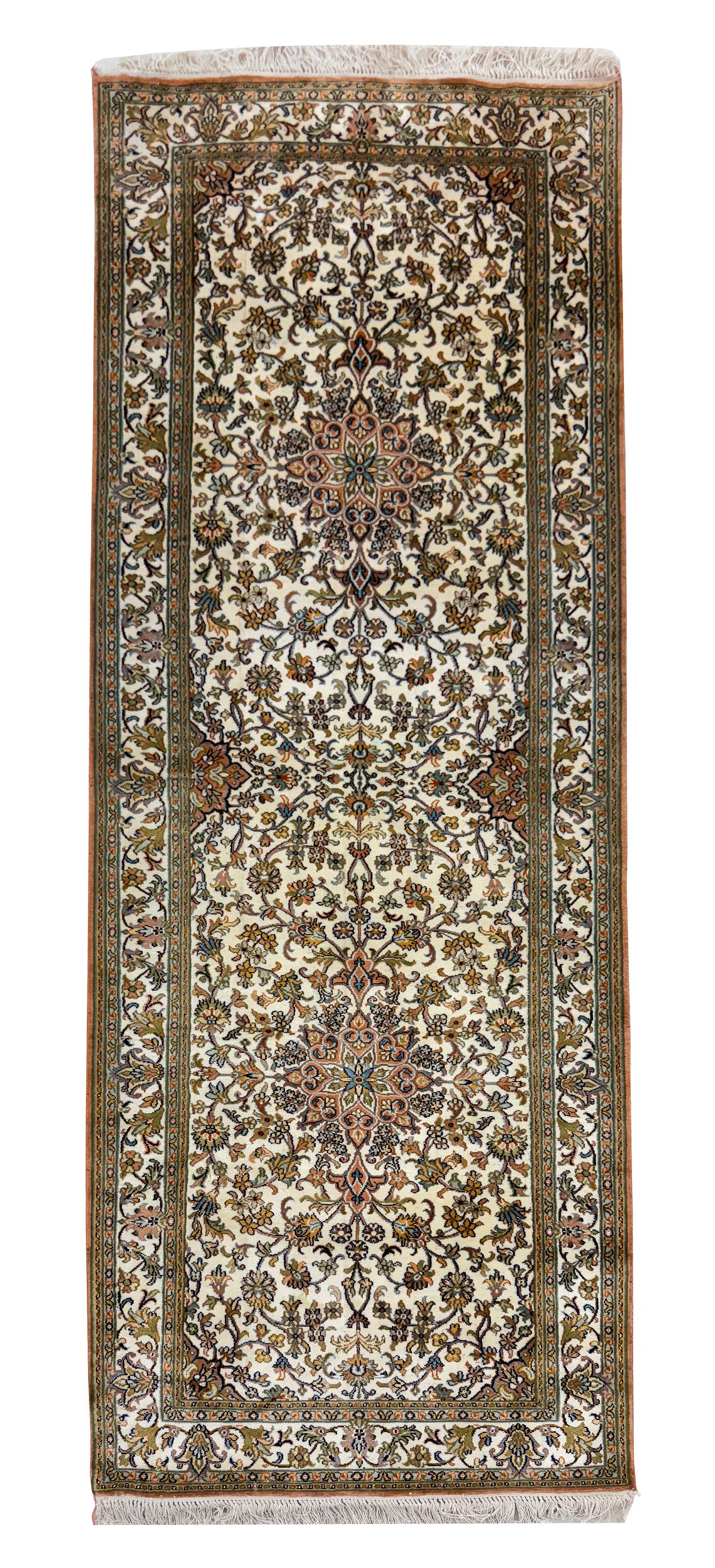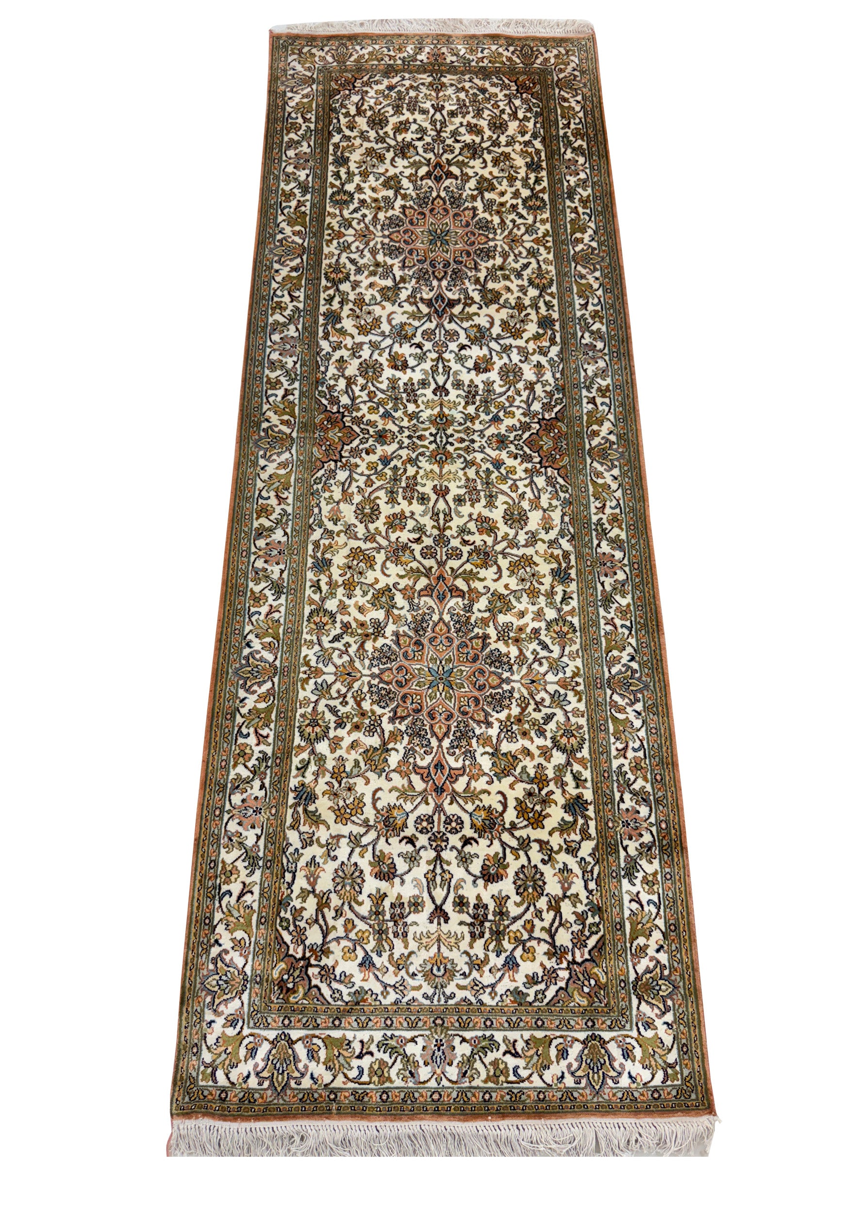 Hand knotted Kashmir pure silk pile runner, 223x78cm | Rug# 32033