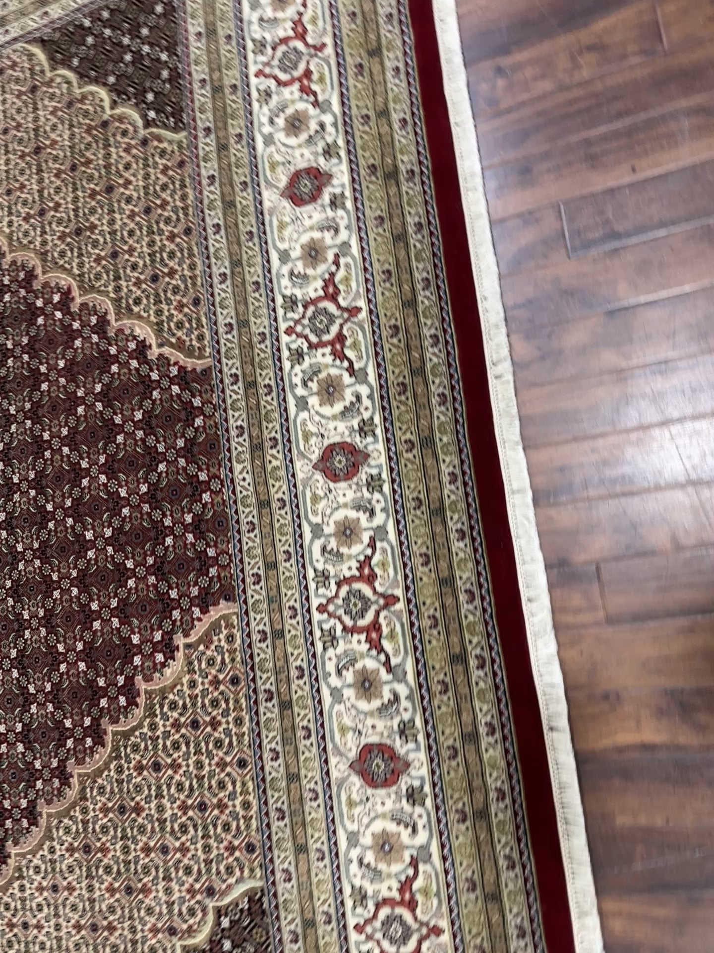 Hand knotted superfine Amritsar carpet, woven in India using New Zealand wool with silk inlay, featuring a classic Tabriz Mahi design, 1414 quality, very durable.