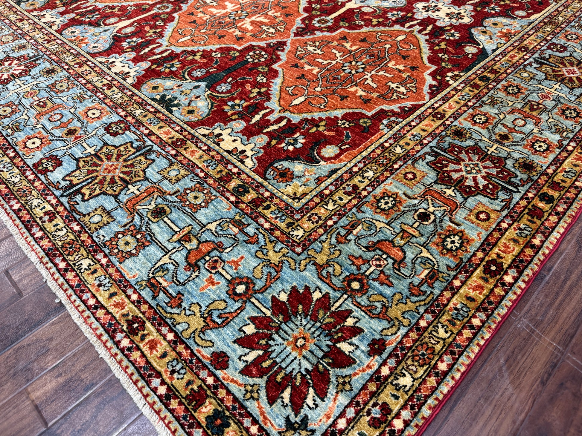 Hand knotted very fine Turkmen weave Afghan rug, woven using hand-spun wool with natural vegetable dyes, featuring a classic 17th century Oushak design, 4040 quality, very durable.