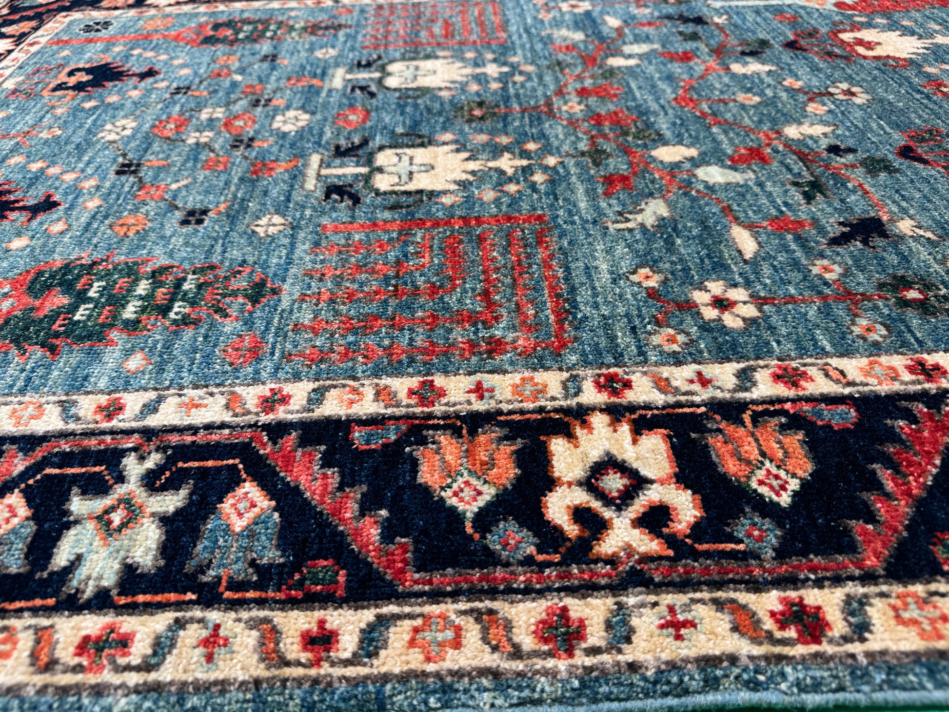 Hand knotted Turkmen weave antique re-reproduction rug, woven in Afghanistan using hand-spun wool with natural vegetable dyes, inspired by a Safavid garden design.