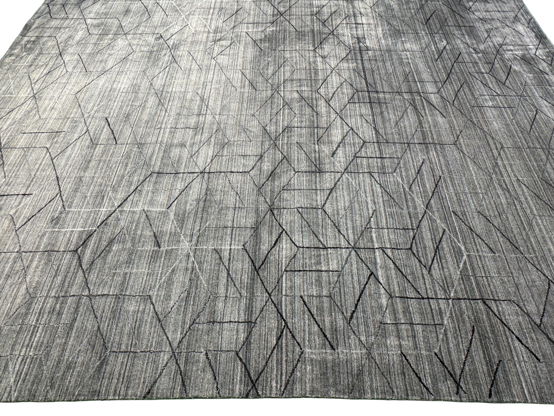 Hand-Loom designer rug, wool & Tencel silk pile, Custom made in India,