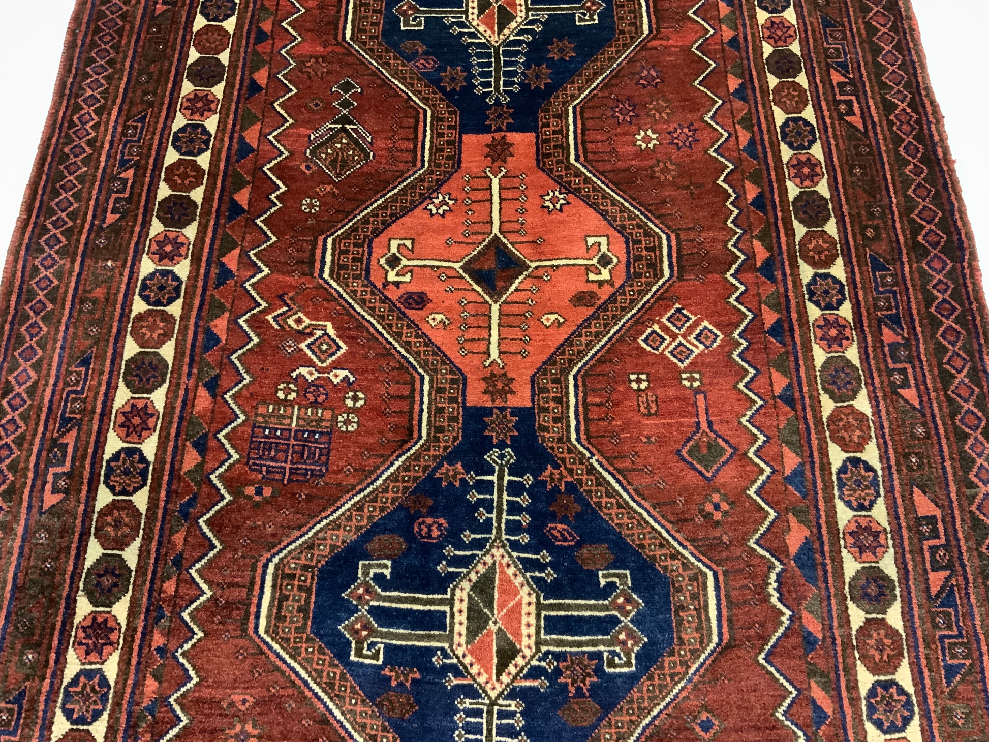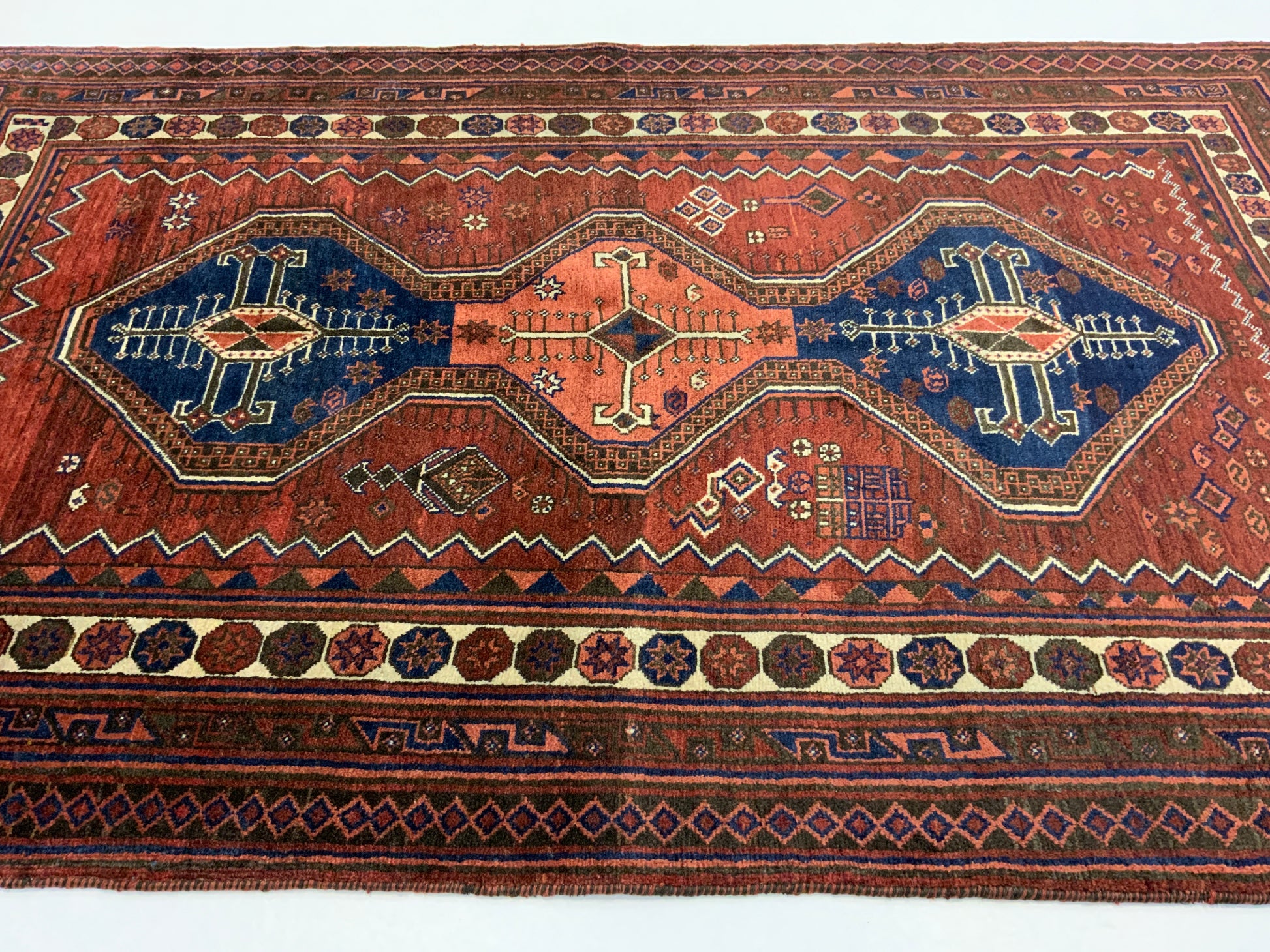 As a piece of tribal art, this rug not only serves as a beautiful floor covering but also carries the cultural narratives and aesthetic values of the Afshari people, making it a meaningful addition to any collection of tribal textiles.