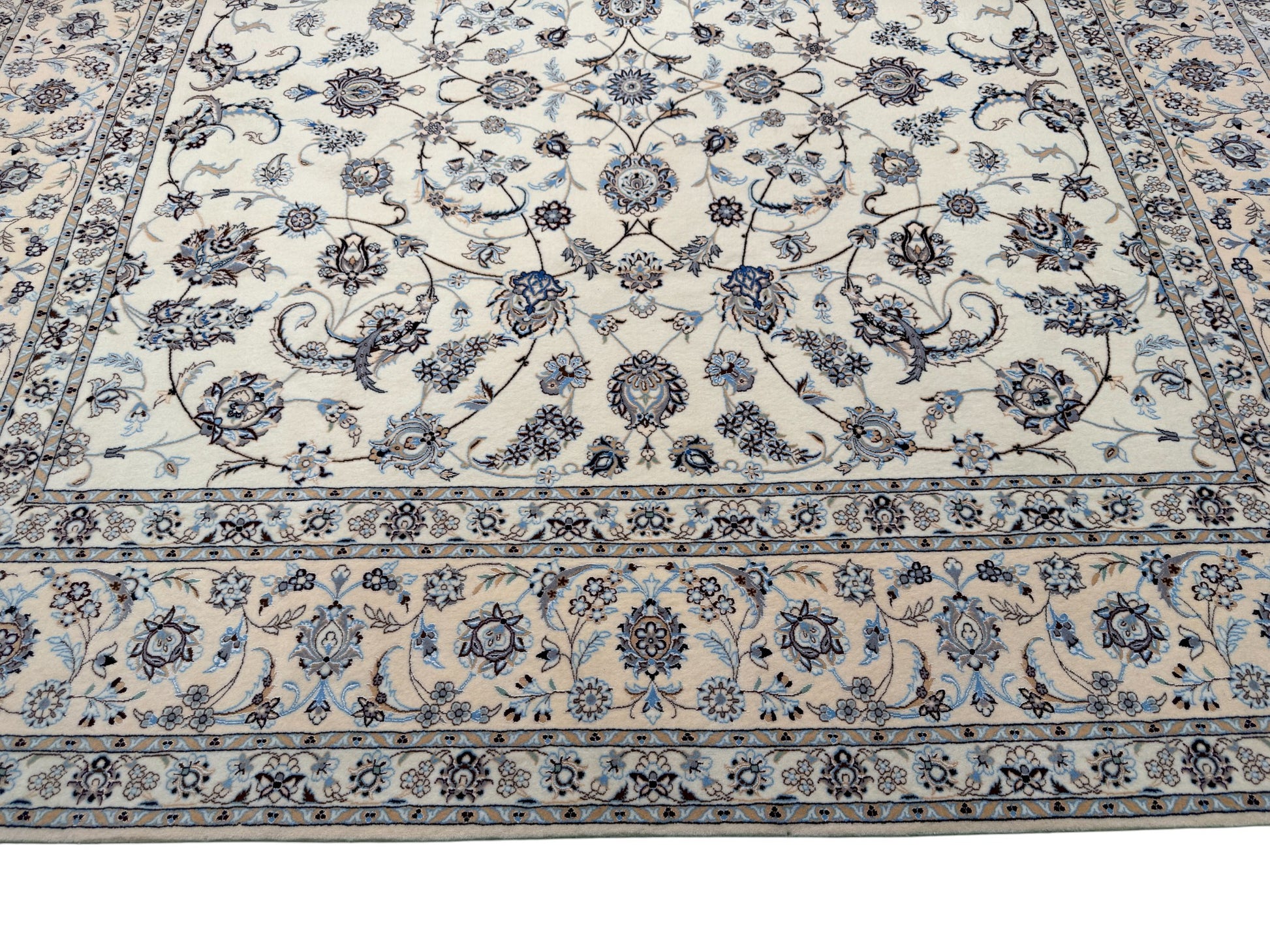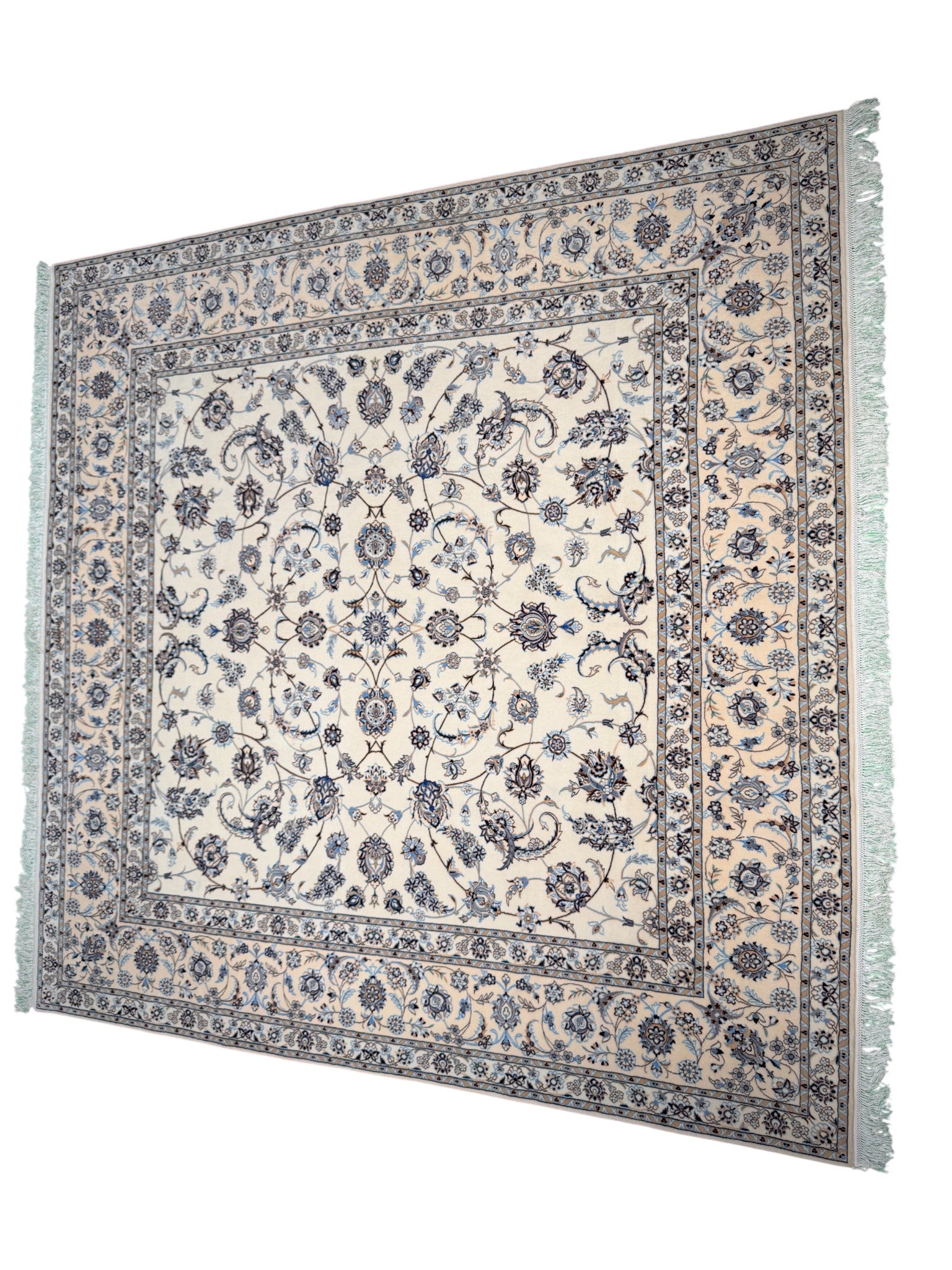 Fine 6LA Nain rug, Persia (circa 1990), woven in wool and silk with 900,000 knots per square metre, featuring an elegant Allover floral design in rare squared shape, immaculate condition, woven in Nain city in Persia,