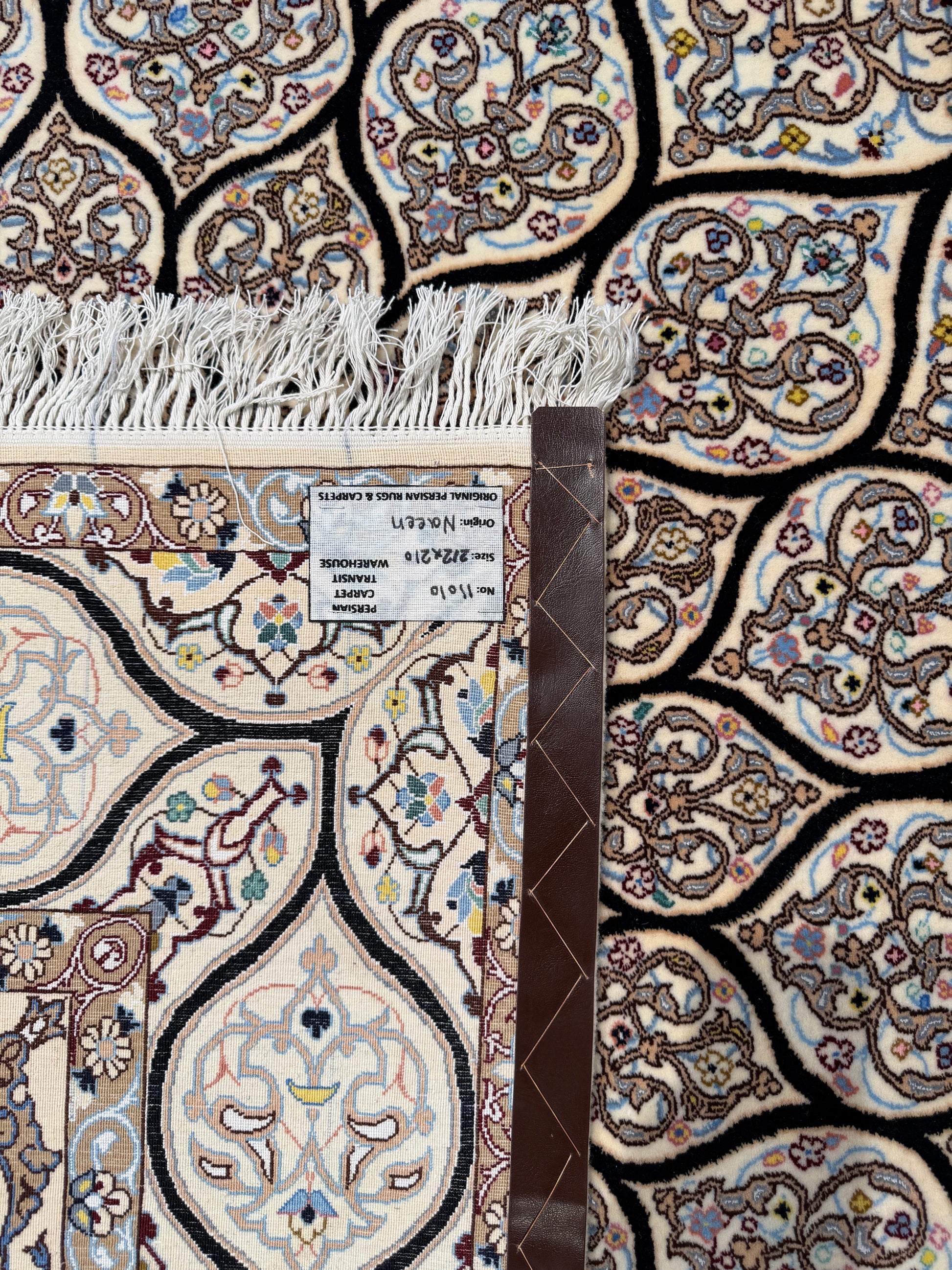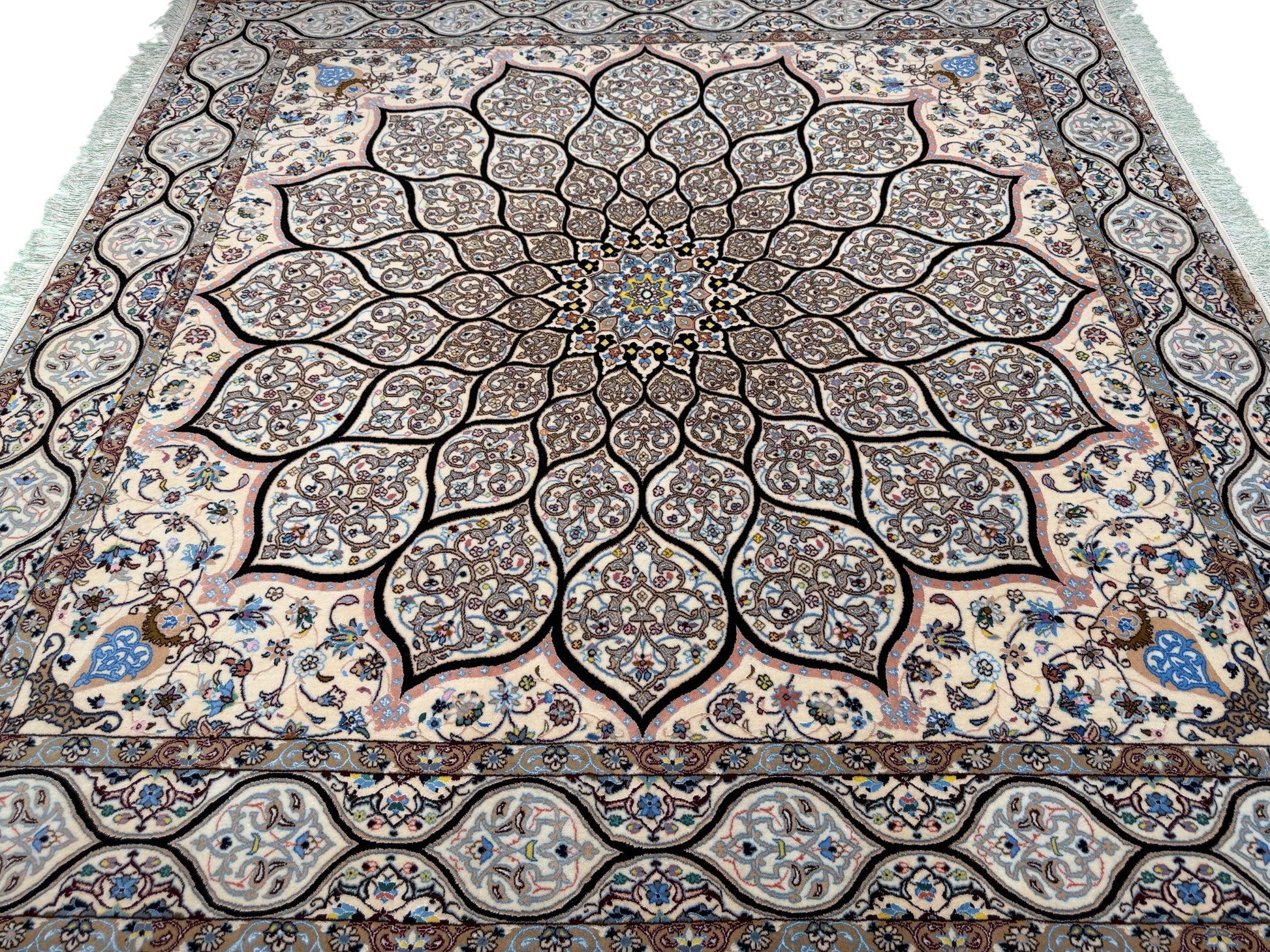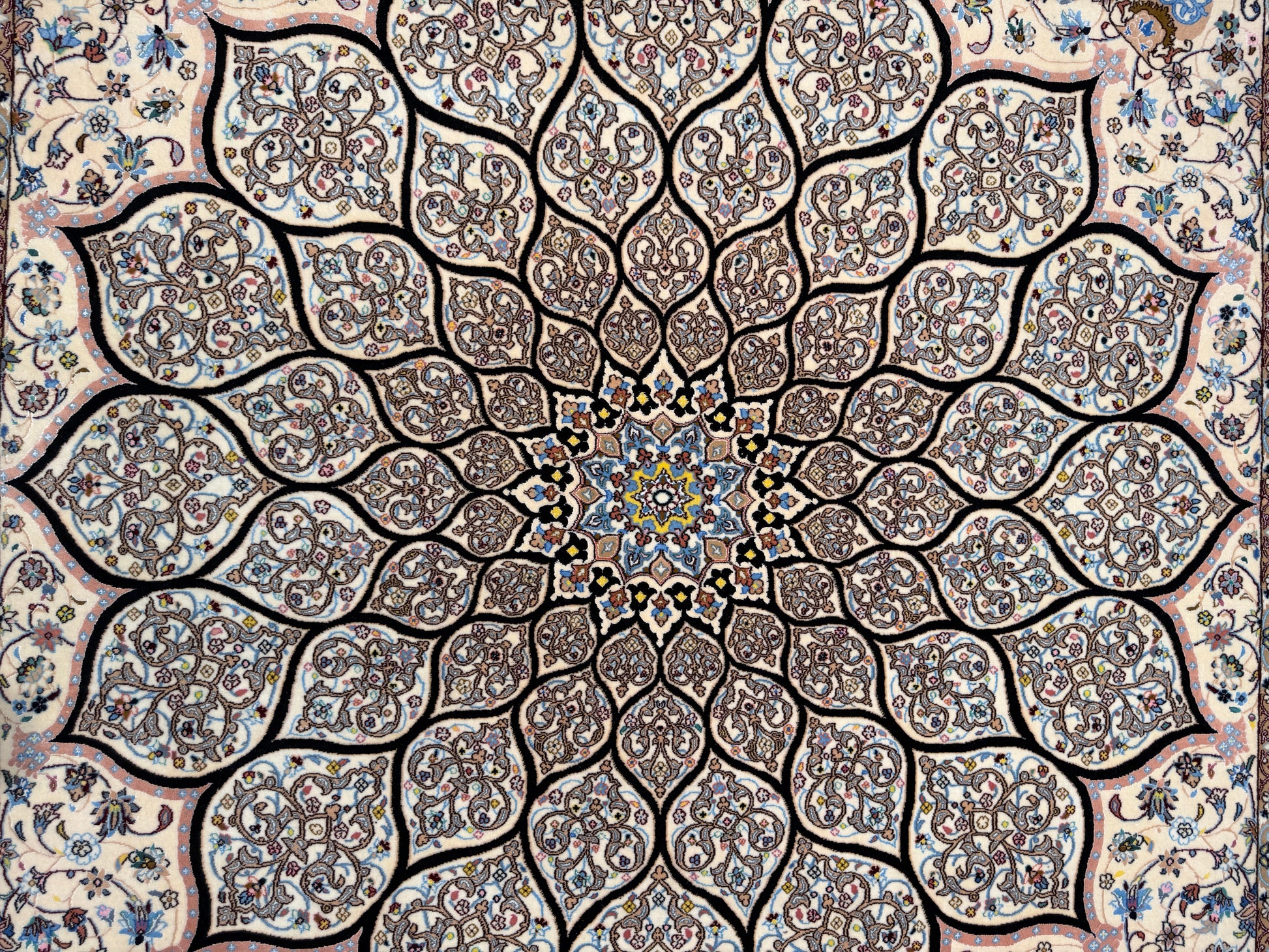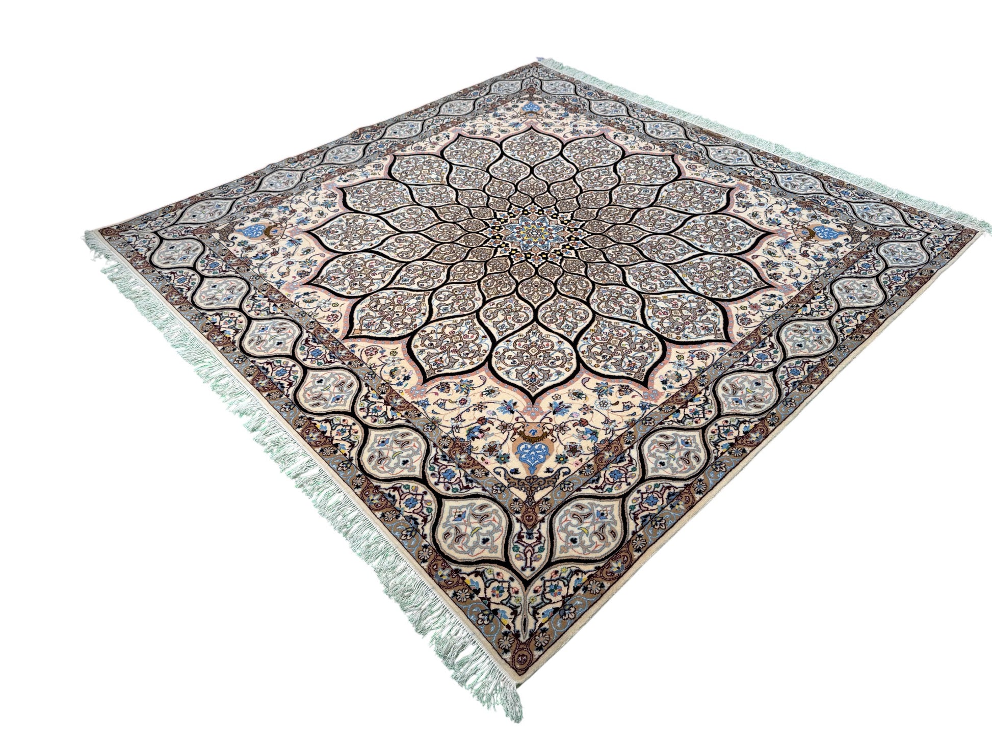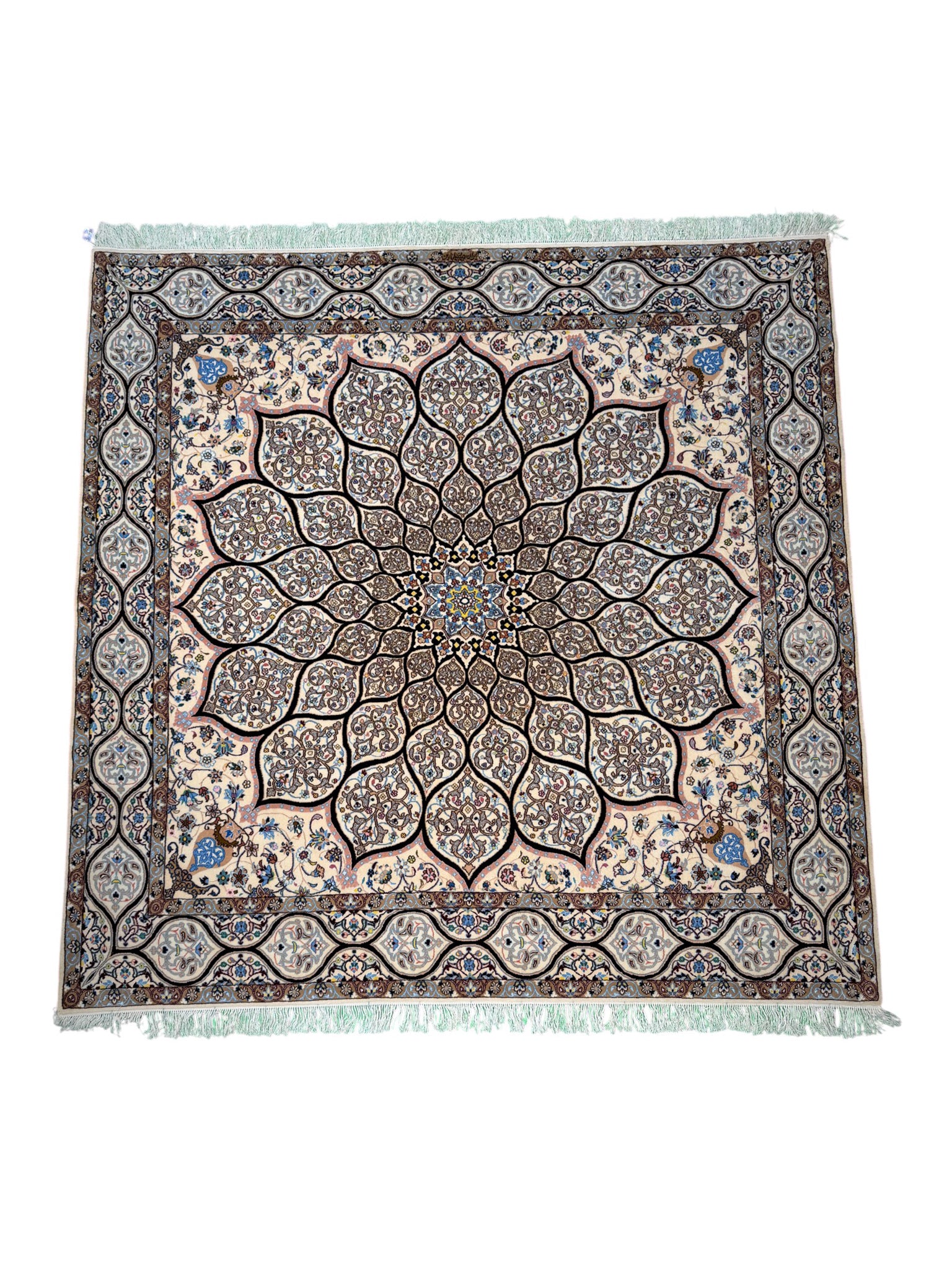 Persian Nain 6LA, silk inlay, Mandela Dome design, Persia 212X210cm | Rug# 11010