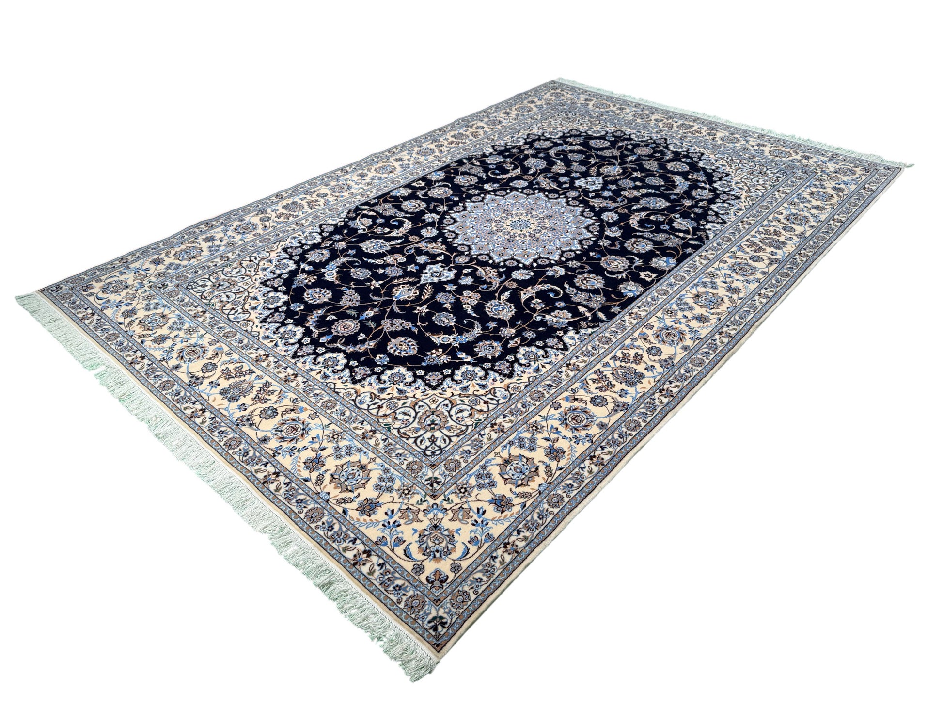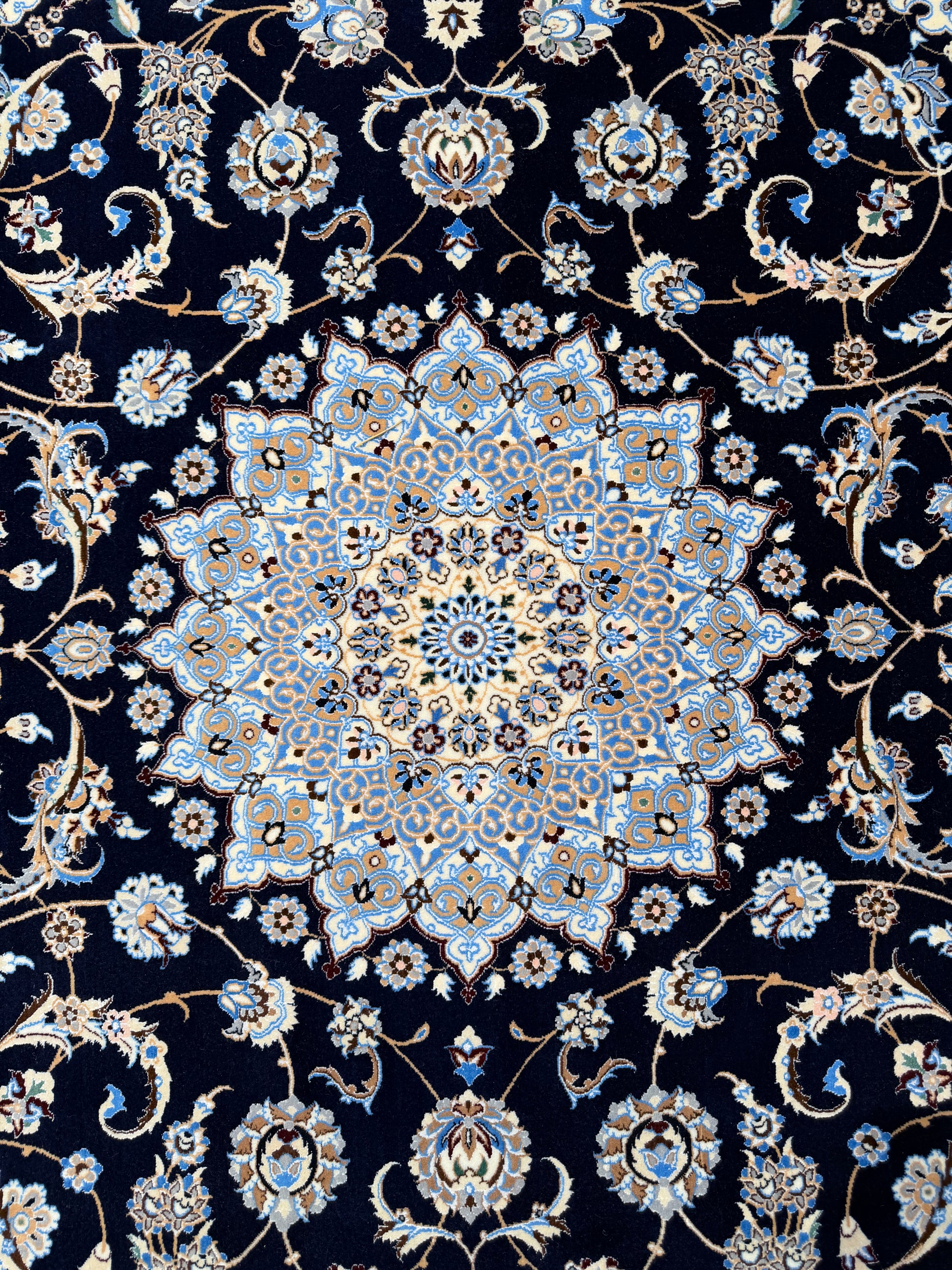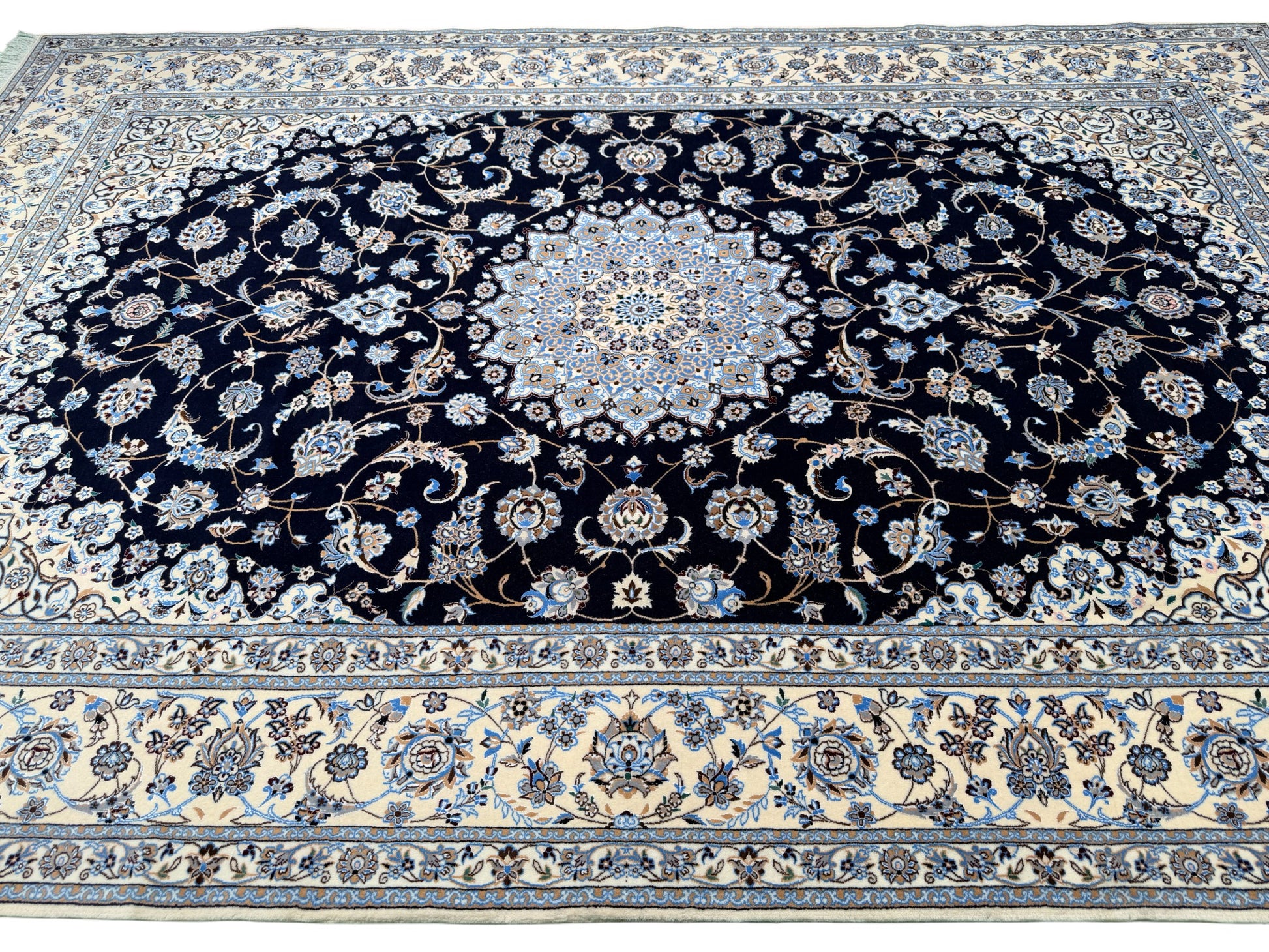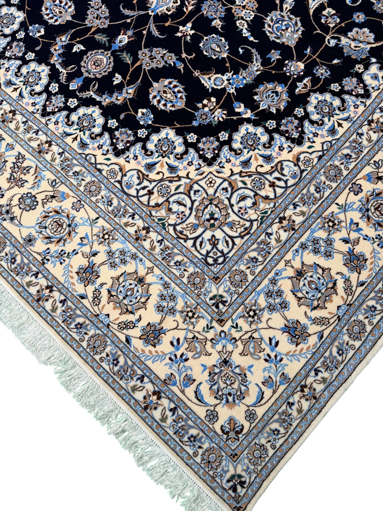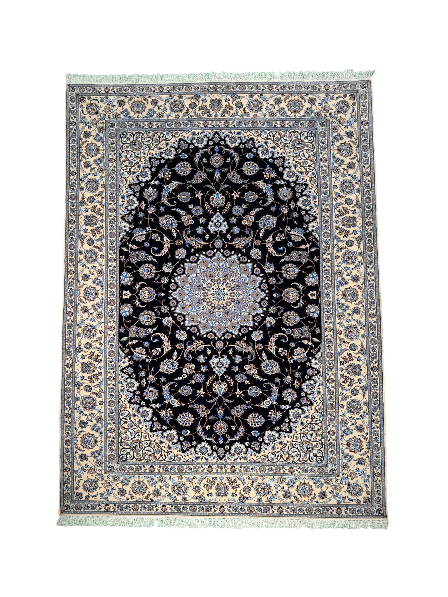 Hand knotted 6LA Nain (circa1990) fine wool & silk pile, 900k K.P.SQ/Metre, Classic Safavid floral with central medallion design, immaculate, Persia,