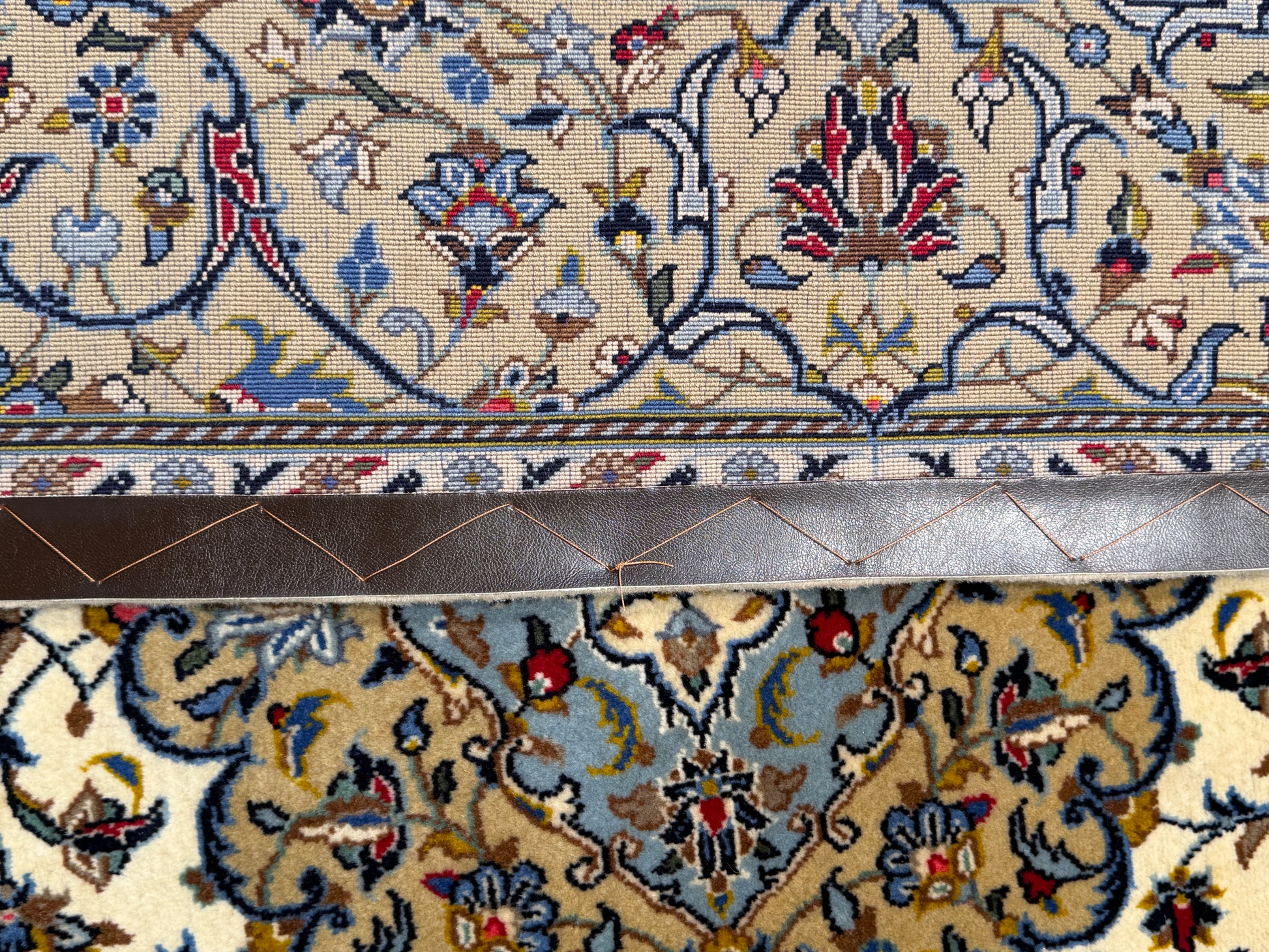 One of a pair Kork-wool Persian Kashan rug, circa 1990, woven in the Shadsar studio, rare and highly durable, showcasing refined Kashan craftsmanship, balanced design and excellent condition for discerning interiors collectors. available as a pair
