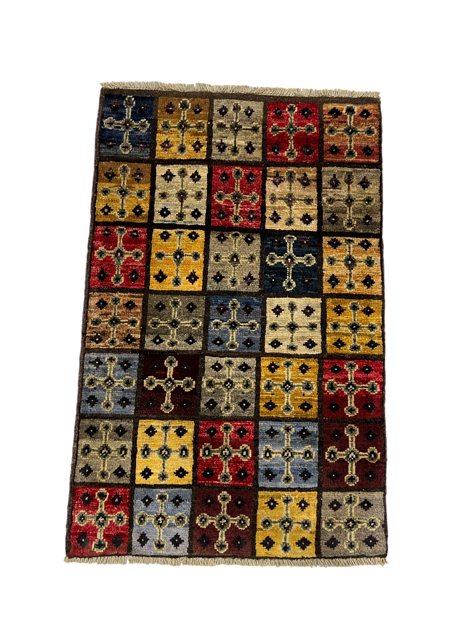 Hand knotted Turkmen weave sampler rug, 100% handspun wool pile, Afghanistan