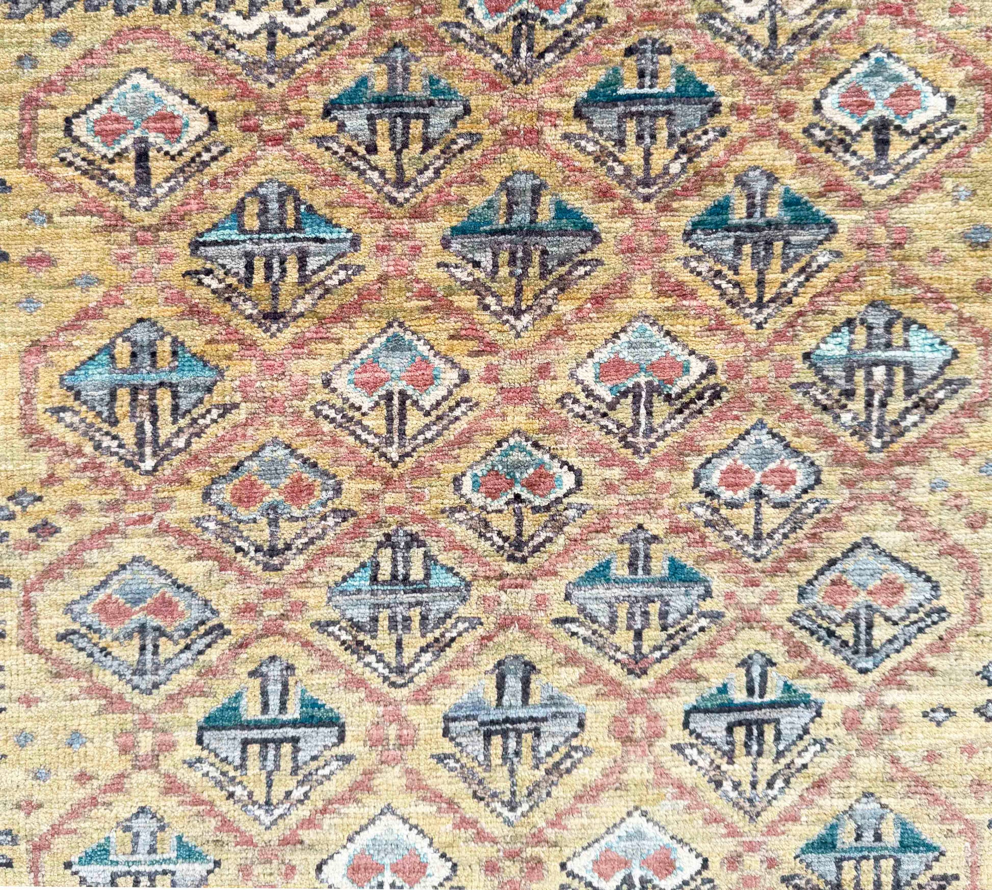 Turkmen-weave Afghan rug, custom made in a studio in Mazar-e Sharif. Hand-spun wool pile dyed with natural vegetable dyes. Inspired by 19th-century Caucasian prayer designs, this piece is immaculate, highly durable, and equally suited for floor use or as a striking wall hanging.