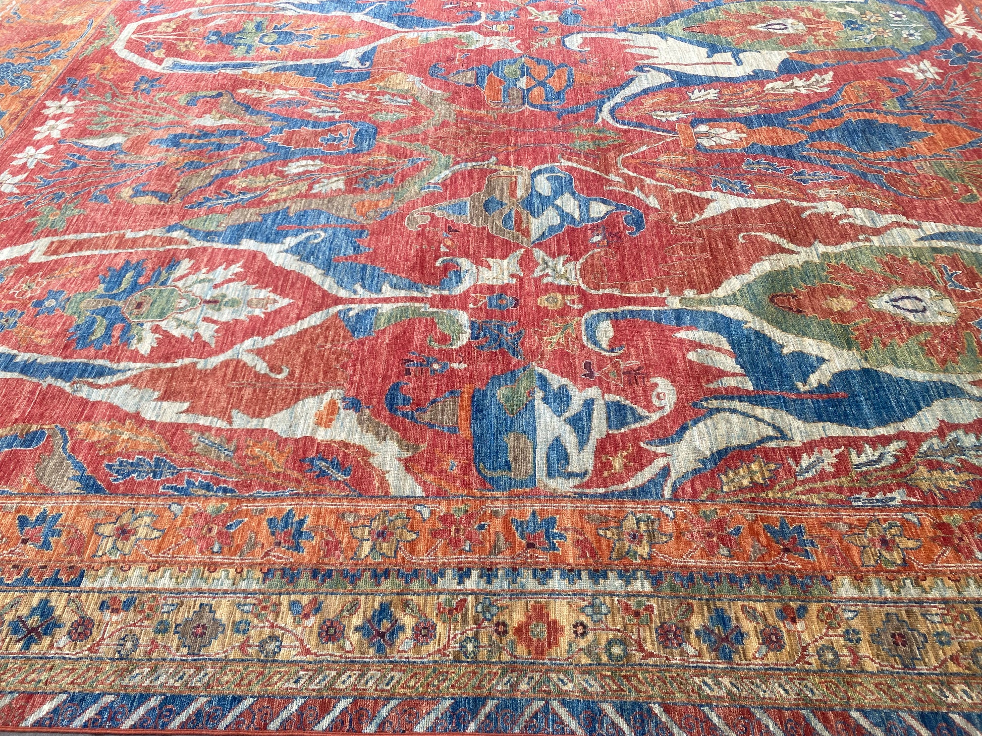 Hand knotted Turkmen weave Afghan rug, with a handspun wool pile dyed using natural vegetable dyes. The design is inspired by a famous 16th century Garous Bijar rug from Bijar, held in a museum collection. A unique and highly durable piece.