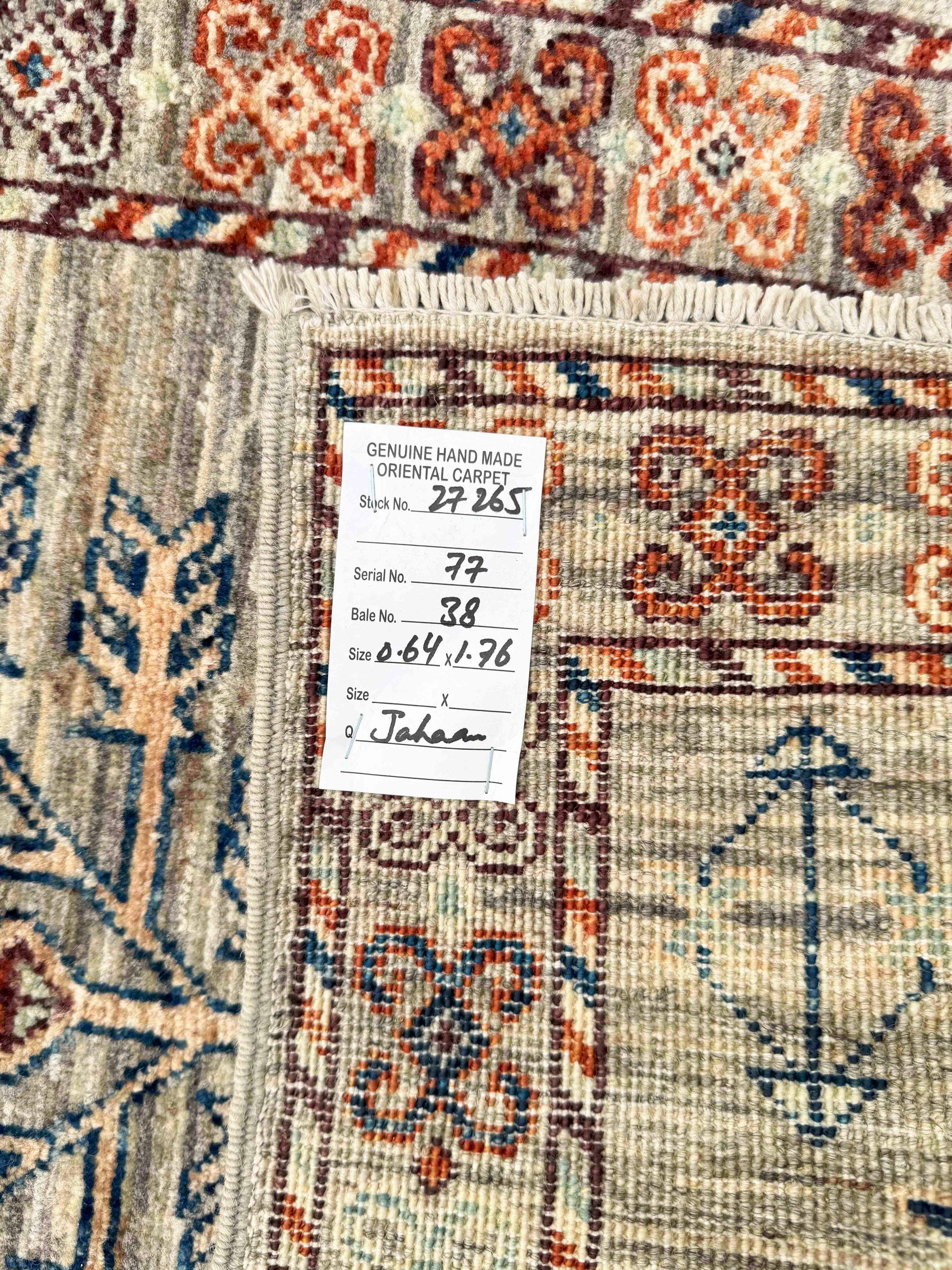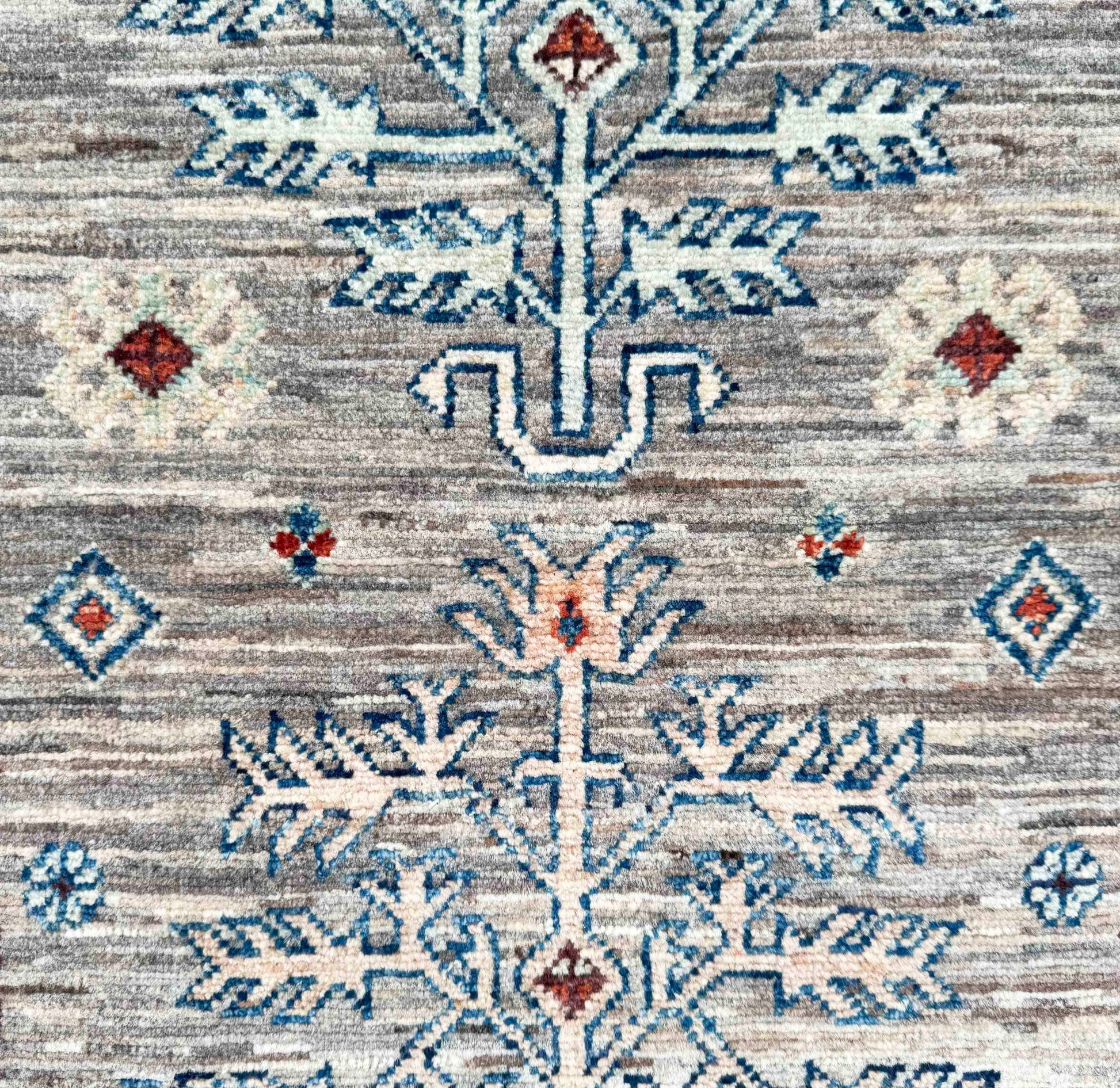 Hand knotted Turkmen-weave Afghan rug, custom made in a studio in Mazar-e Sharif. The design is inspired by a 19th century Bakhshiash Ziegler carpet, woven with hand-spun wool and dyed using natural vegetable dyes.