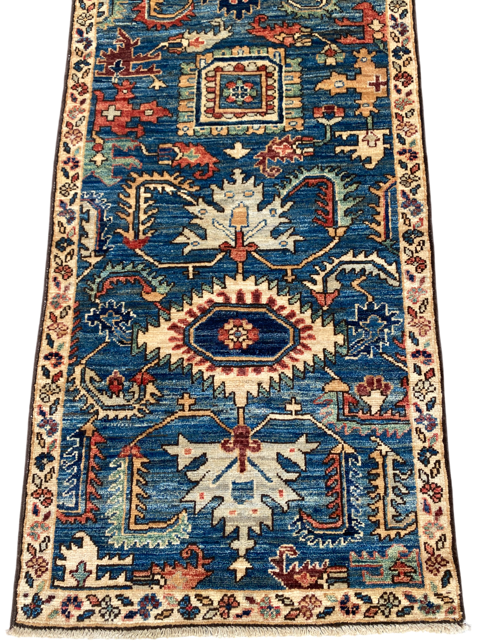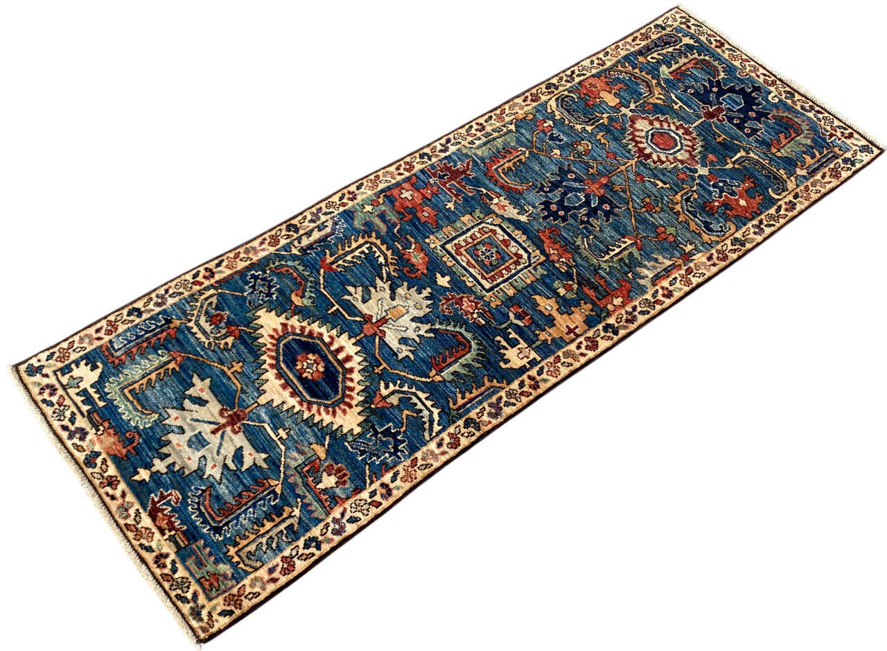 Hand-knotted, custom-made Afghan rug woven by Turkmen artisans, using natural vegetable dyes. The famous 19th-century Serapi-Heriz design, woven using hand-spun local wool. size 194x69 cm