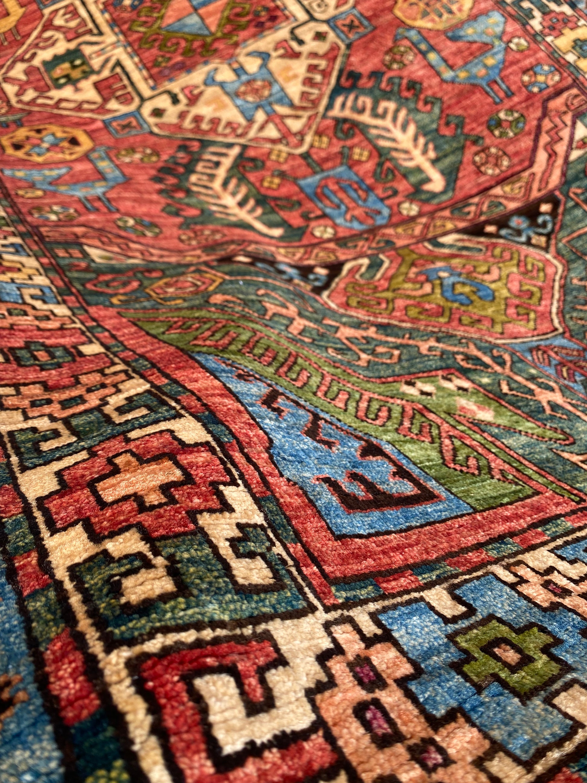 Hand-knotted, custom-made Afghan rug woven by Turkmen artisans, using natural vegetable dyes. The famous 19th-century Serapi-Heriz design, woven using hand-spun local