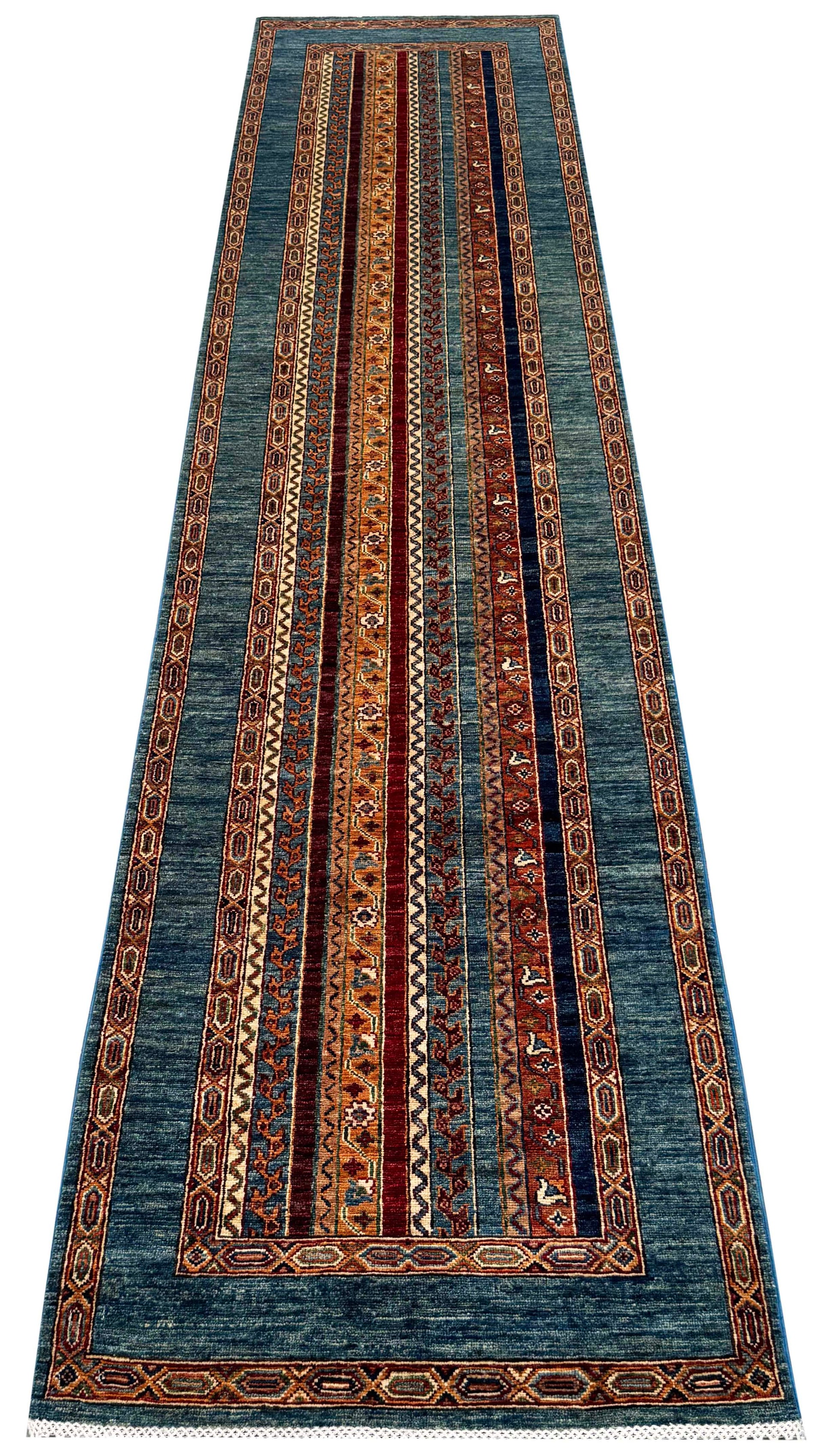 Turkmen weave Afghan runner, Caucasian design 358x83cm | Rug# 27246