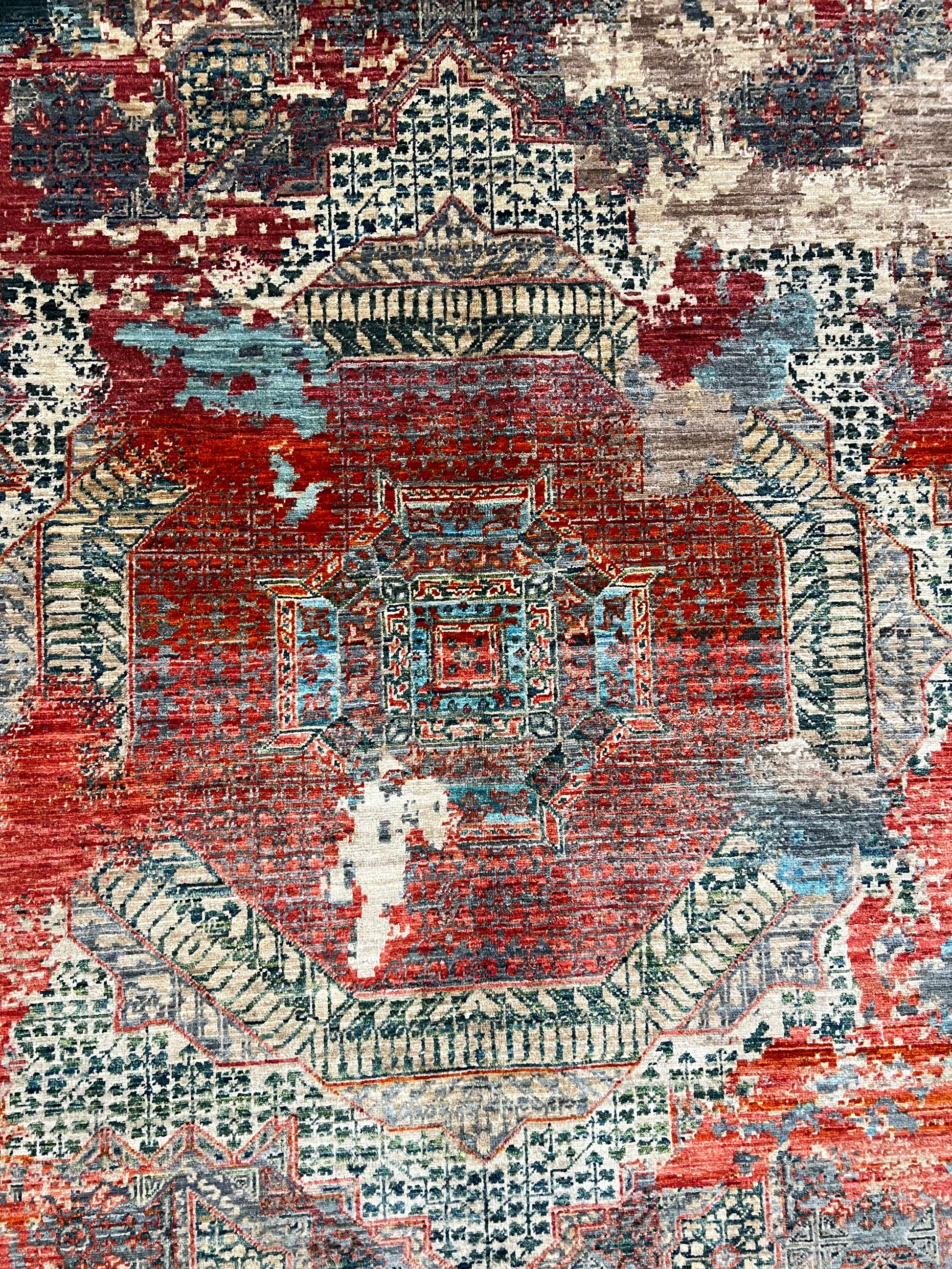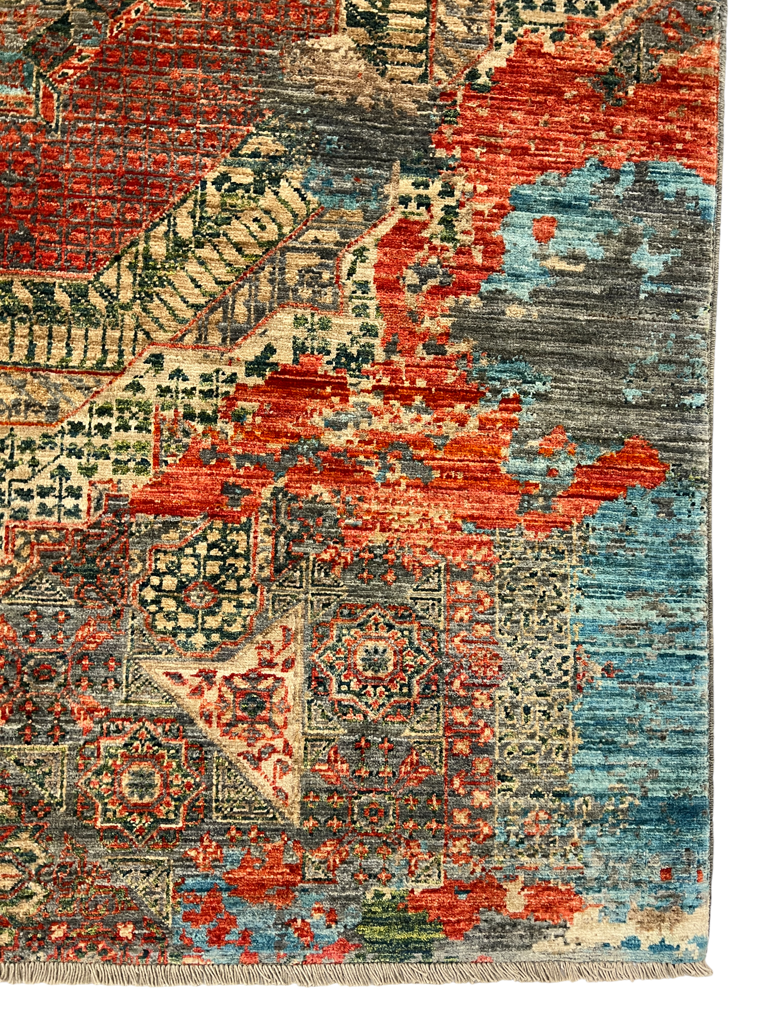 handspun wool pile, natural vegetable dyes, woven in a studio in Mazar-e Sharif.